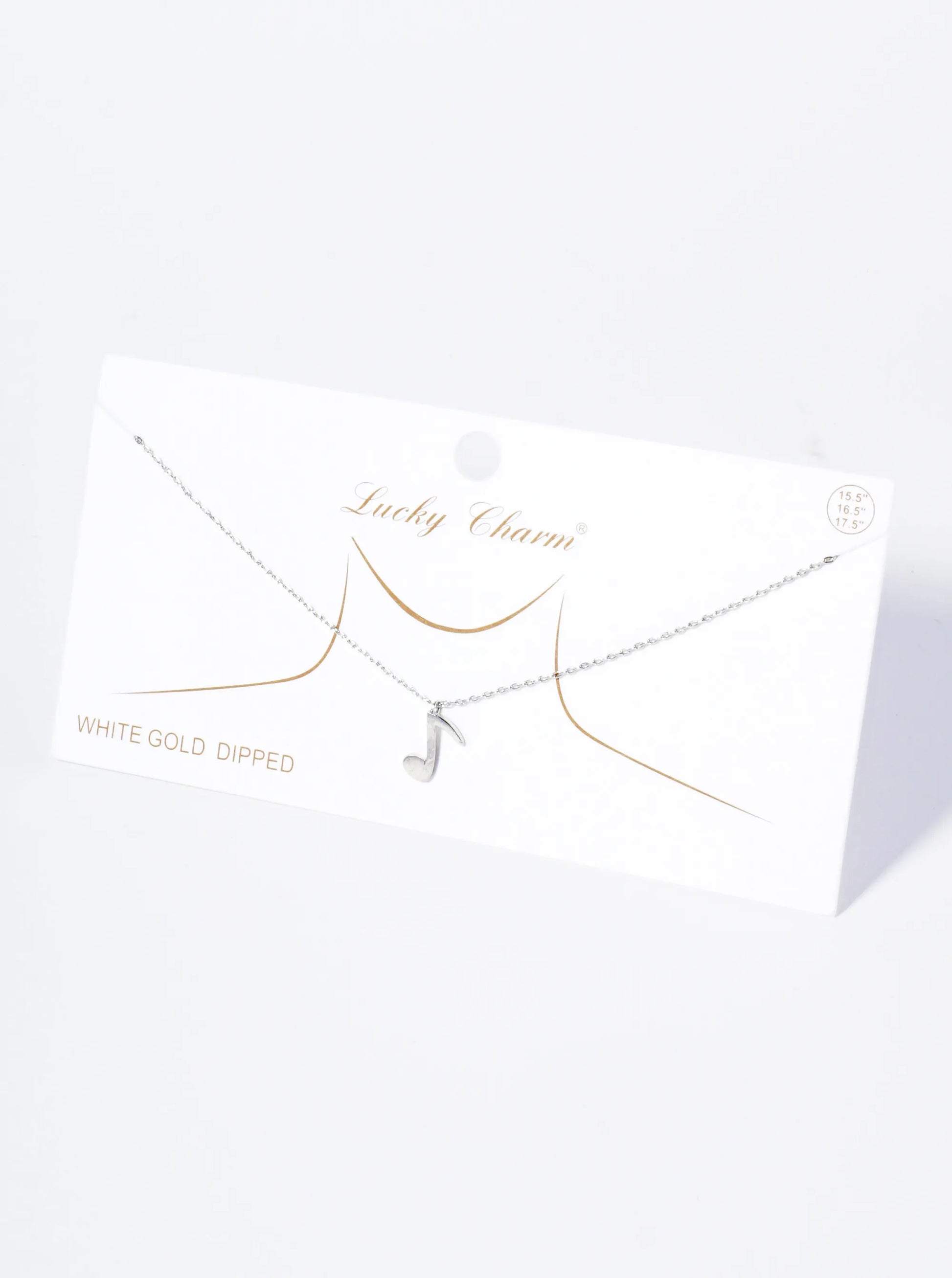18K Gold Dipped Brushed Brass Musical Note Pendant Necklace