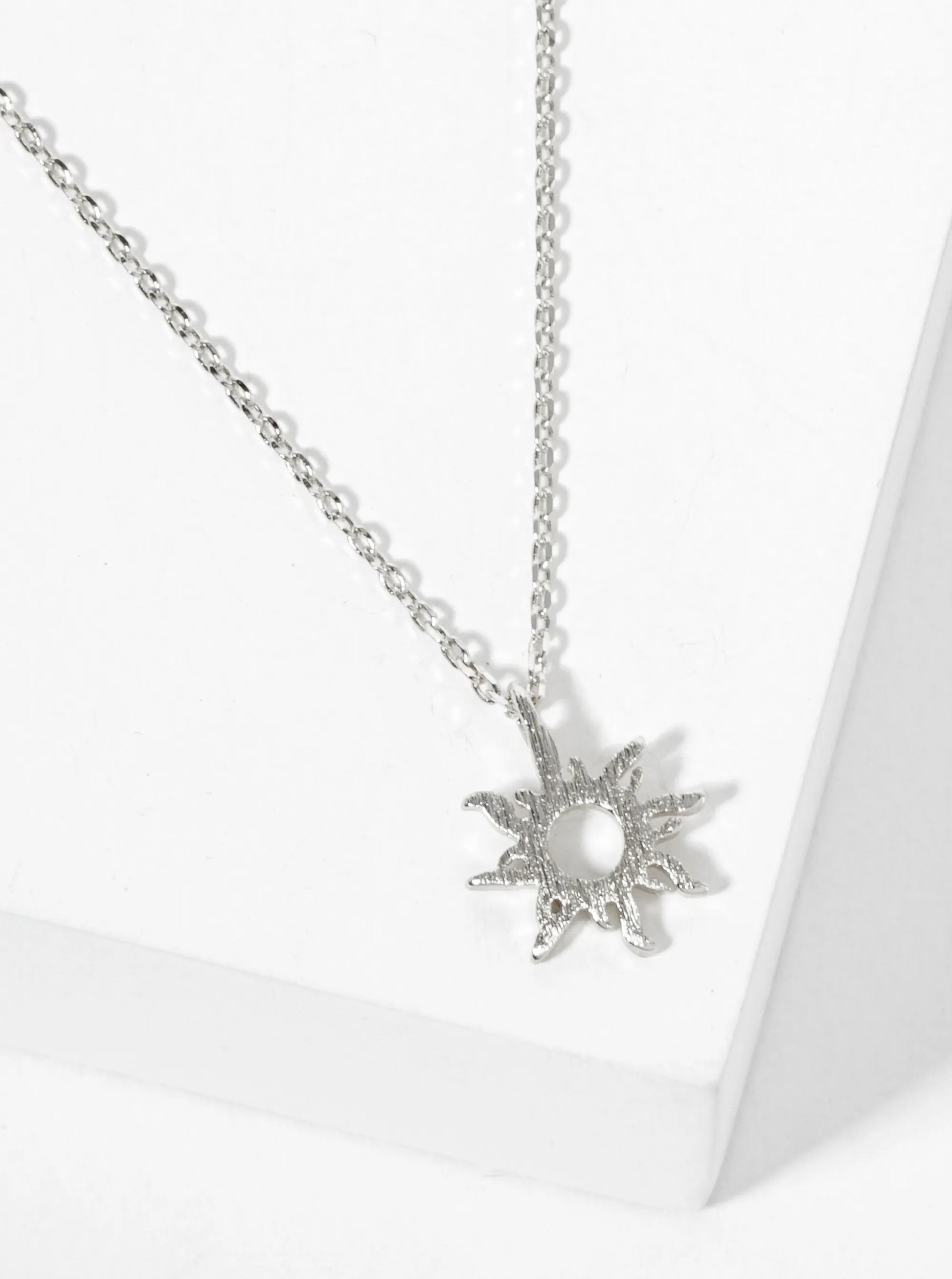 18K Gold Dipped Brushed Brass Sun Pendant Necklace