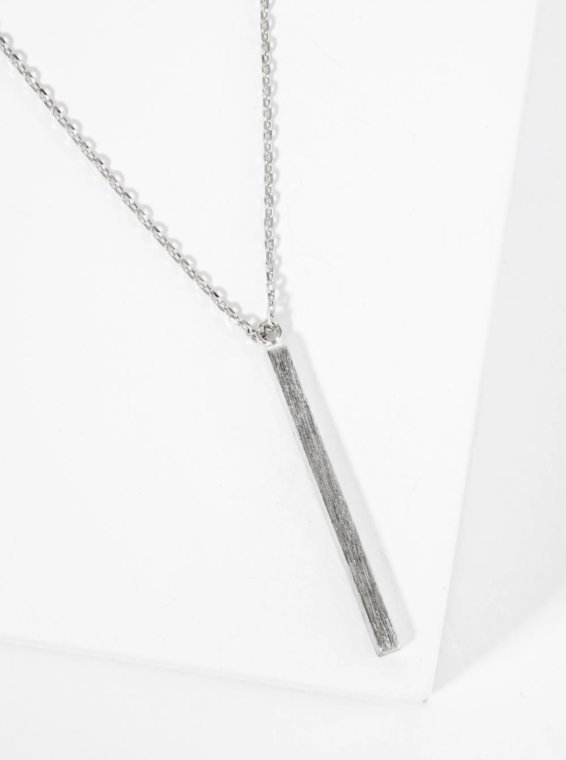 The Necklace Is A Modern And Elegant Piece That Exudes Minimalist Sophistication. The Necklace Features A Sleek Vertical Bar Pendant Crafted From Brushed Brass, Giving It A Soft, Matte Texture With A Contemporary Finish. Ideal For Everyday Wear Or Special Occasions, This Necklace Adds A Refined And Timeless Touch To Any Outfit.