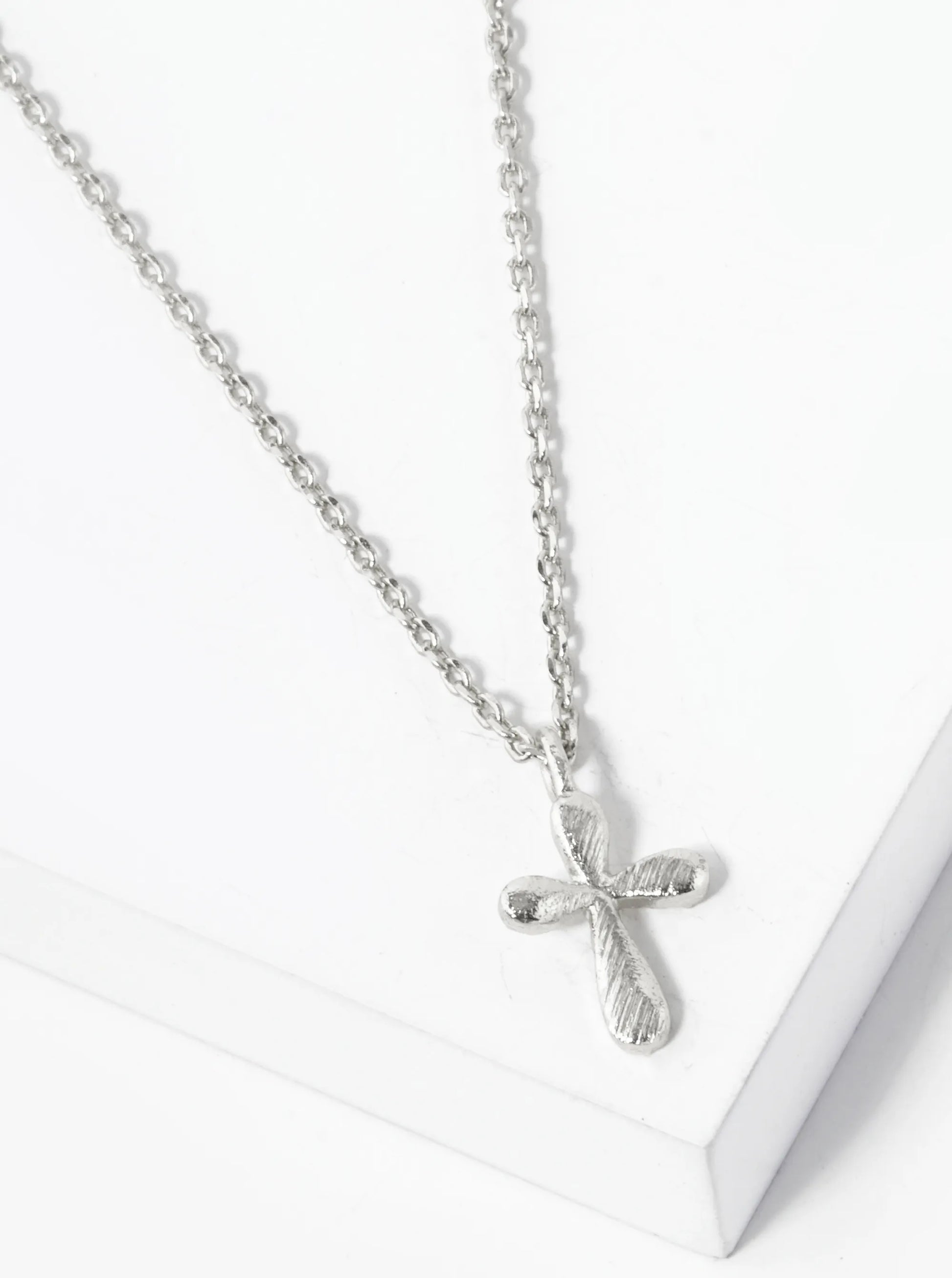 18K Gold Dipped Brushed Tiny Brass Cross Pendant Necklace