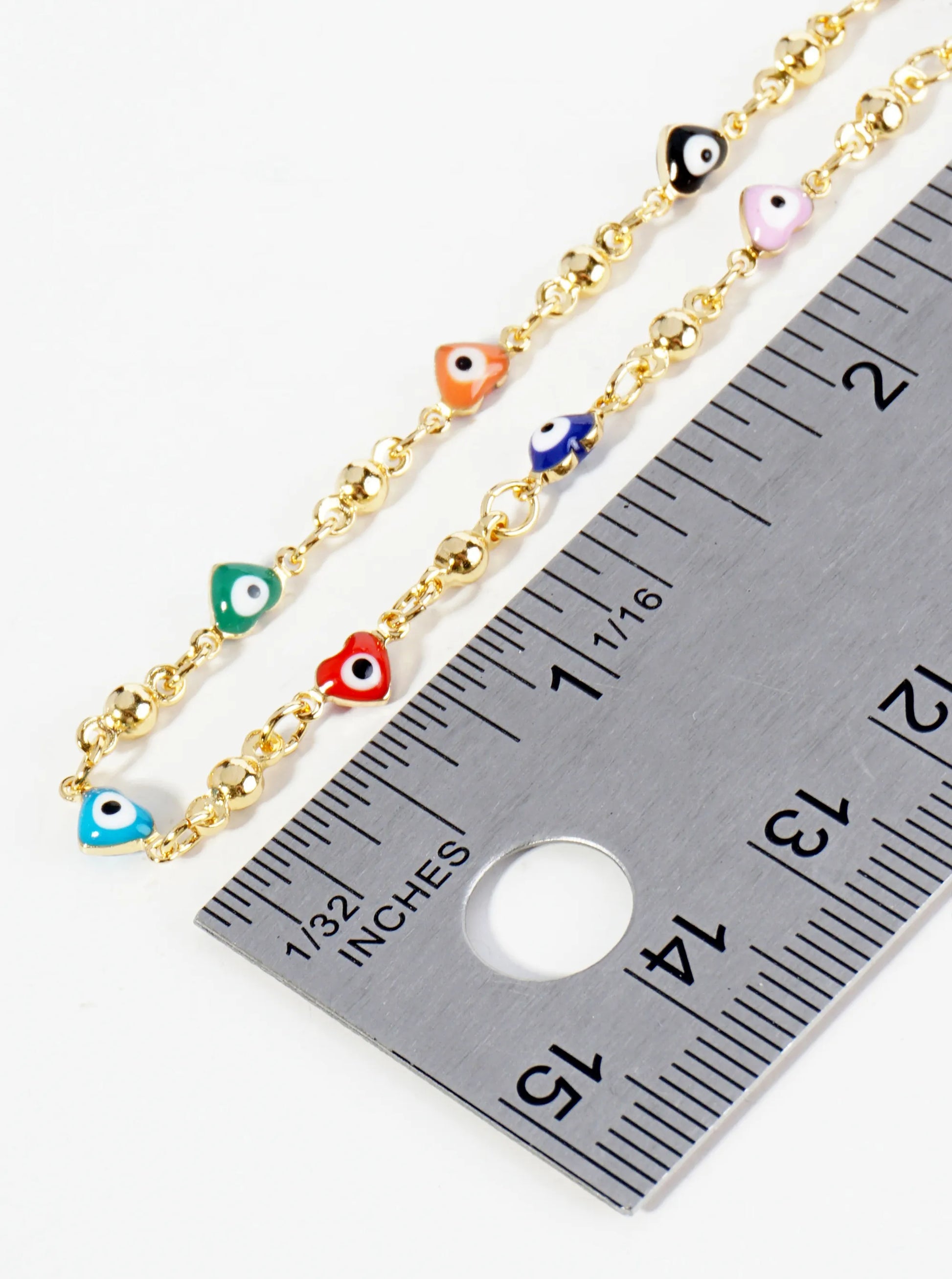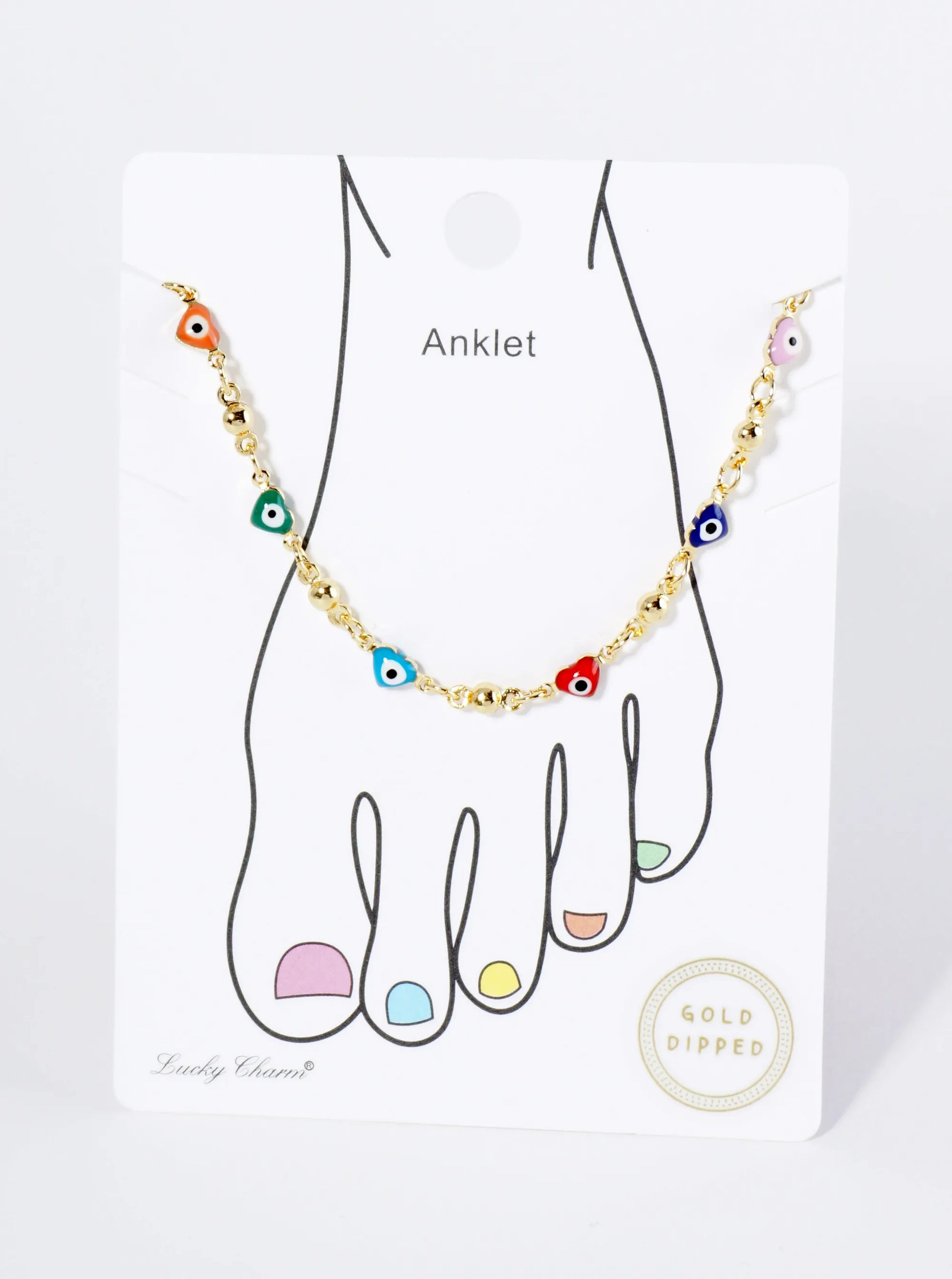 18K Gold Dipped Colorful Heart Evil Eye Charms Brass Chain Anklet