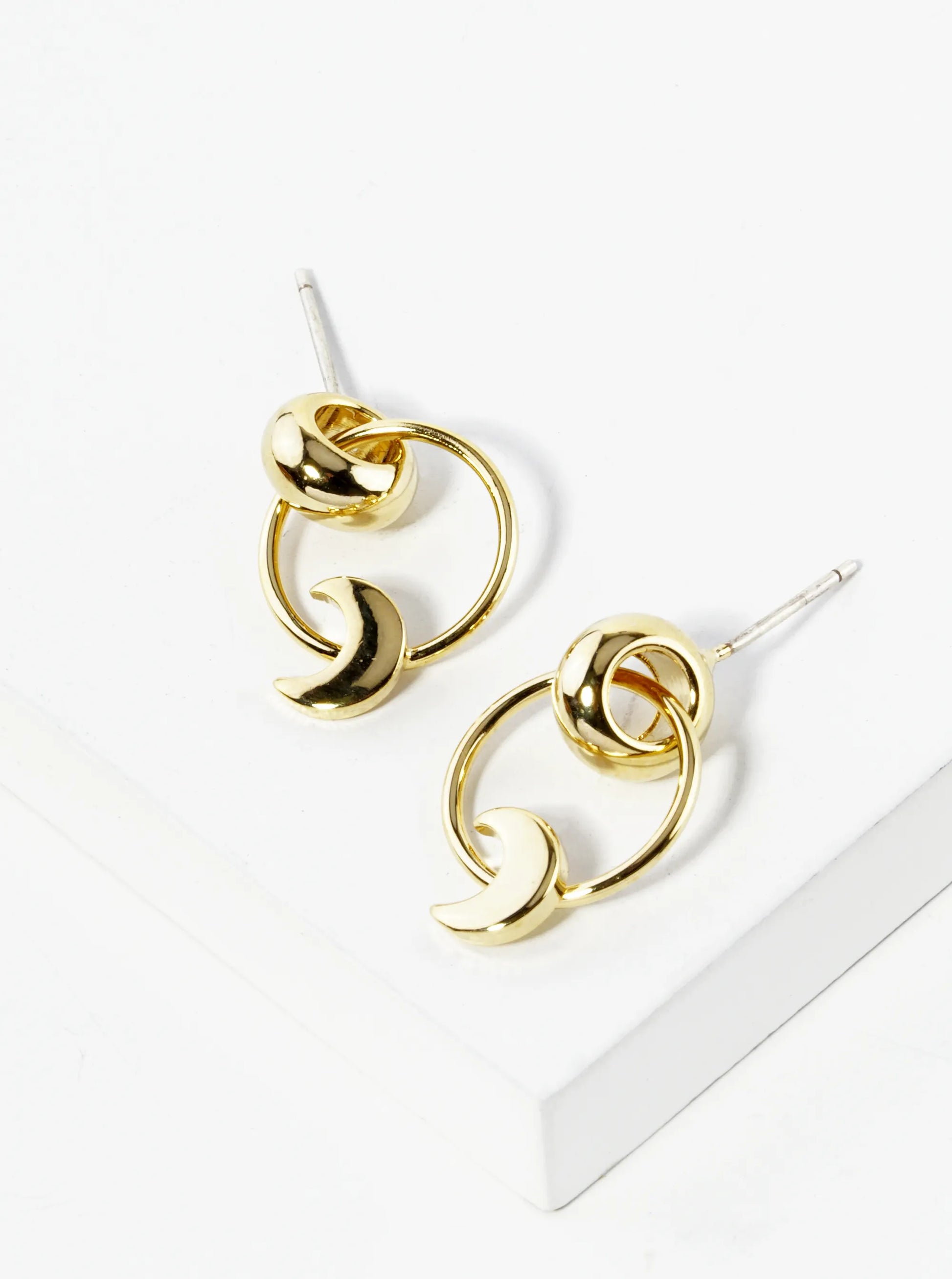 18K Gold Dipped Crescent Moon Drop Door Knocker Post Earrings