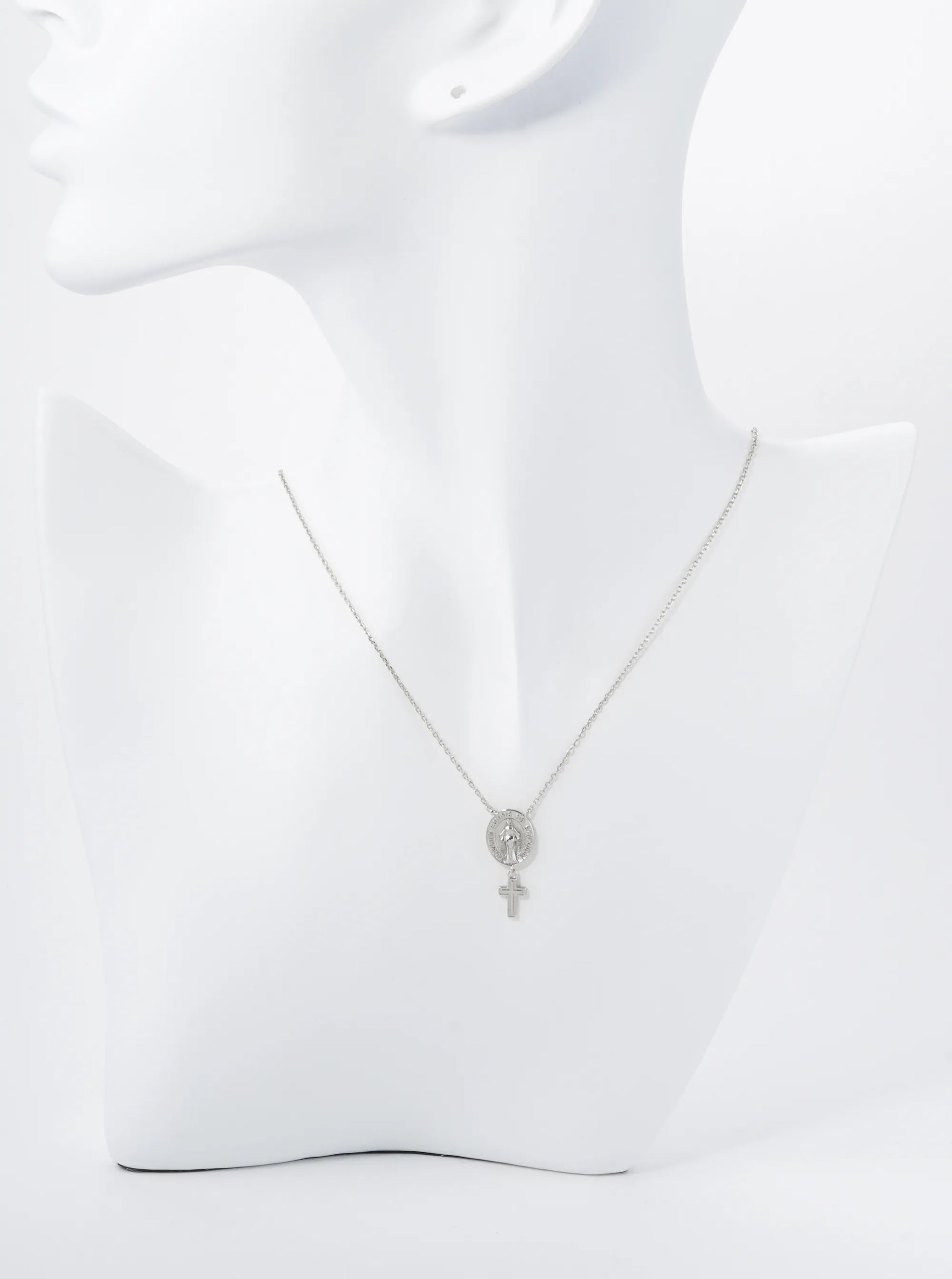 18K Gold Dipped Cross Drop Oval Miraculous Medal Religious Pendant Necklace