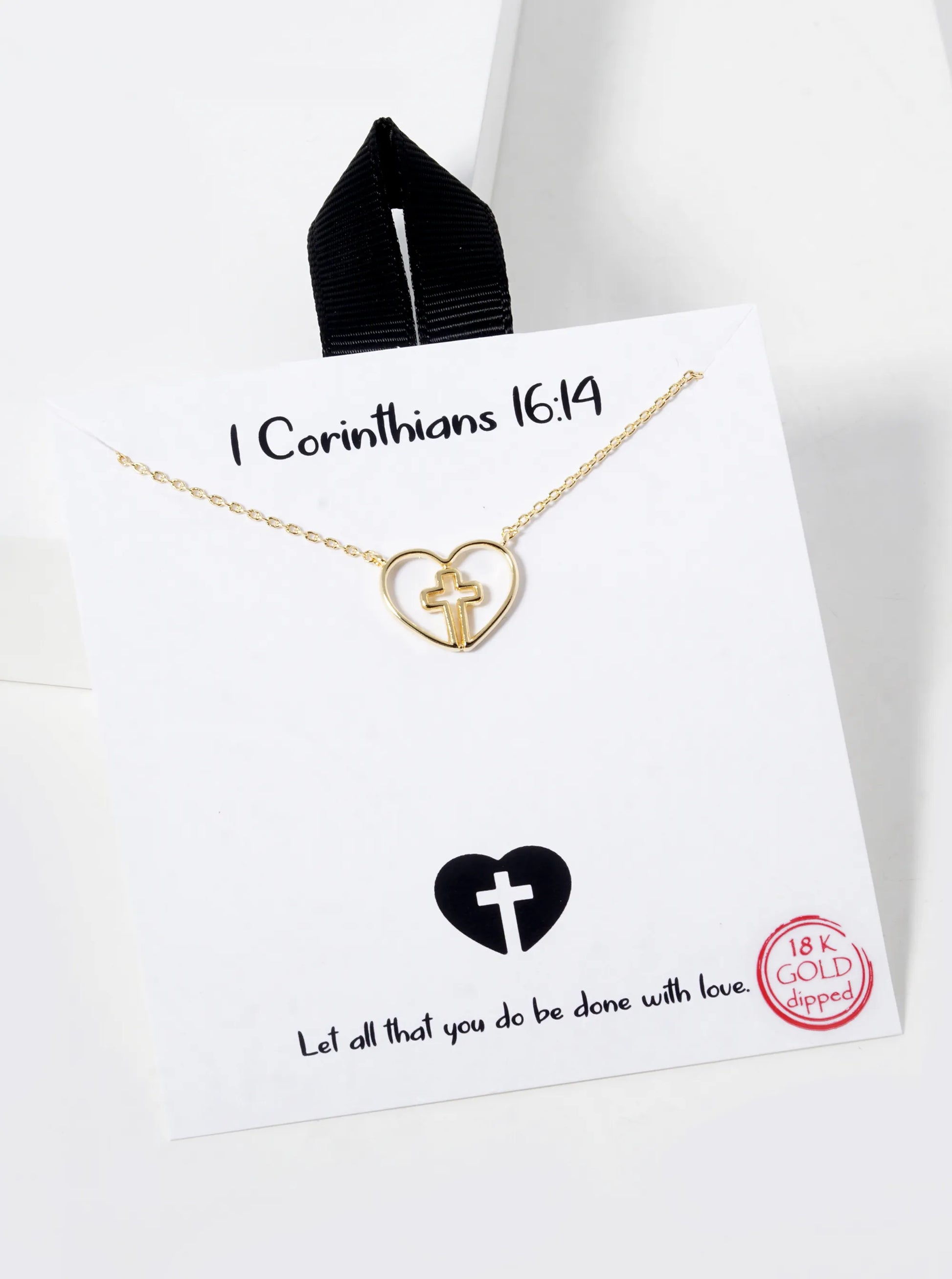 18K Gold Dipped Cross In Heart Pendant Necklace