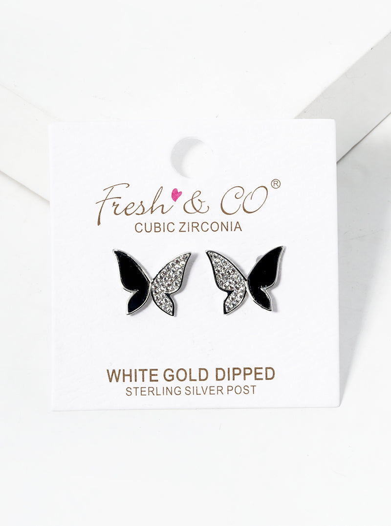 18K-Gold-Dipped Crown In CZ Pave MOP Heart Post Stud Earrings