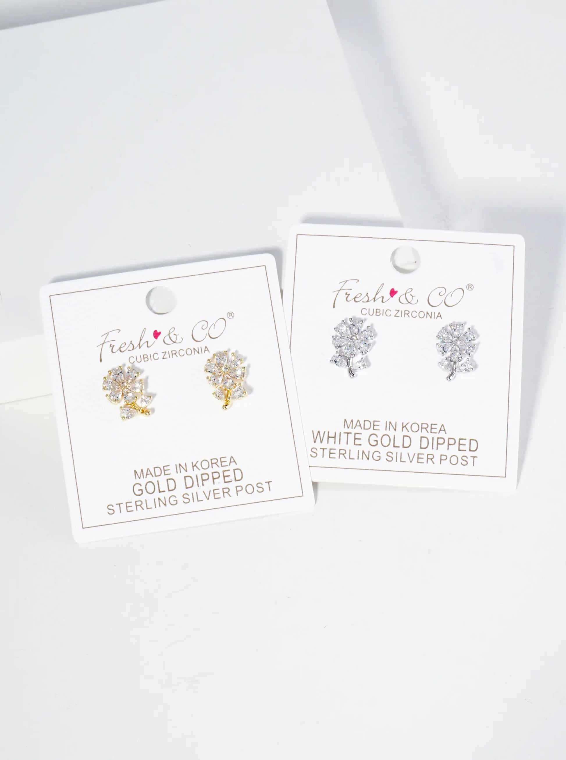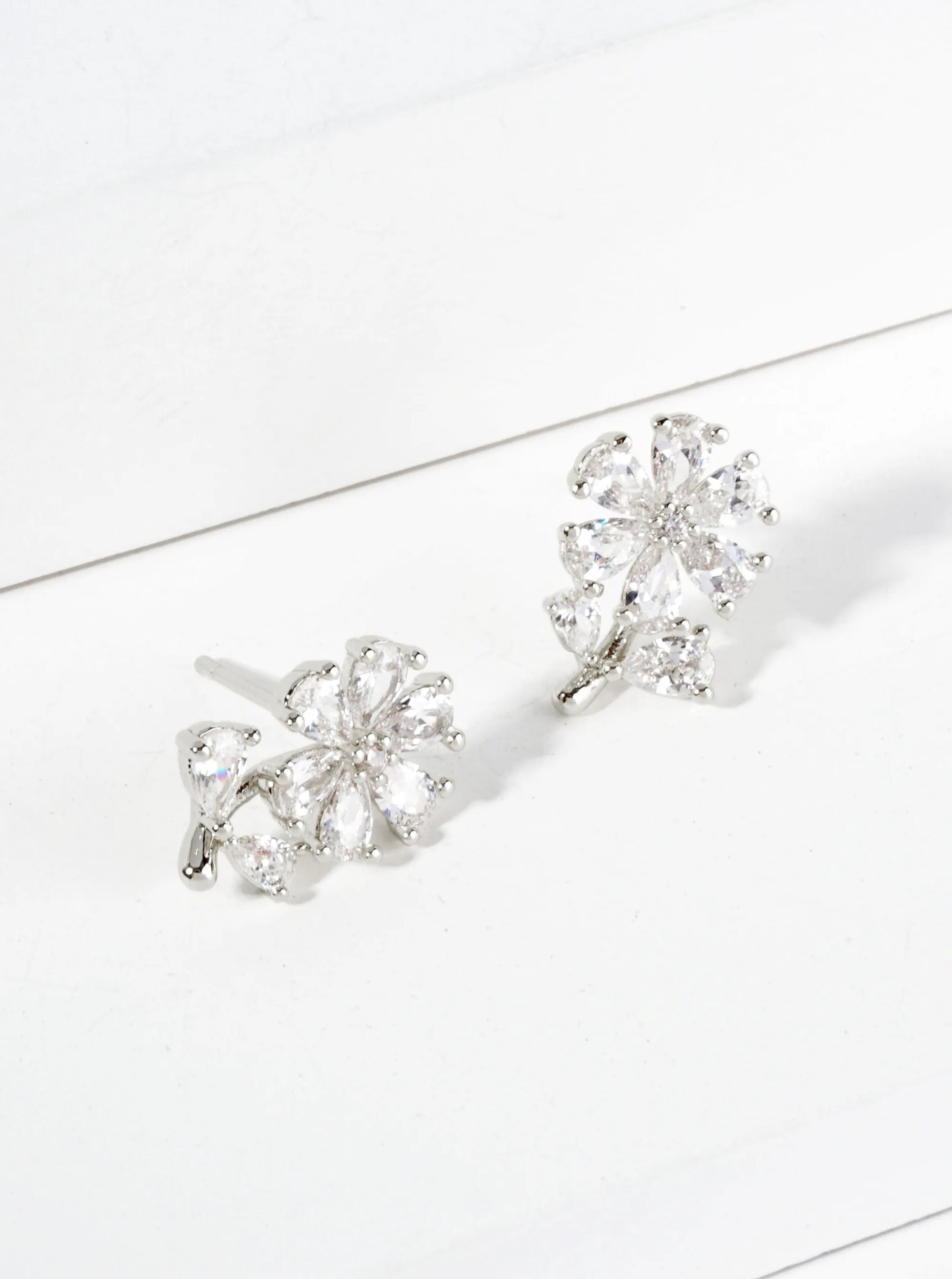18K Gold Dipped Cubic Zirconia Flower Stud Earrings