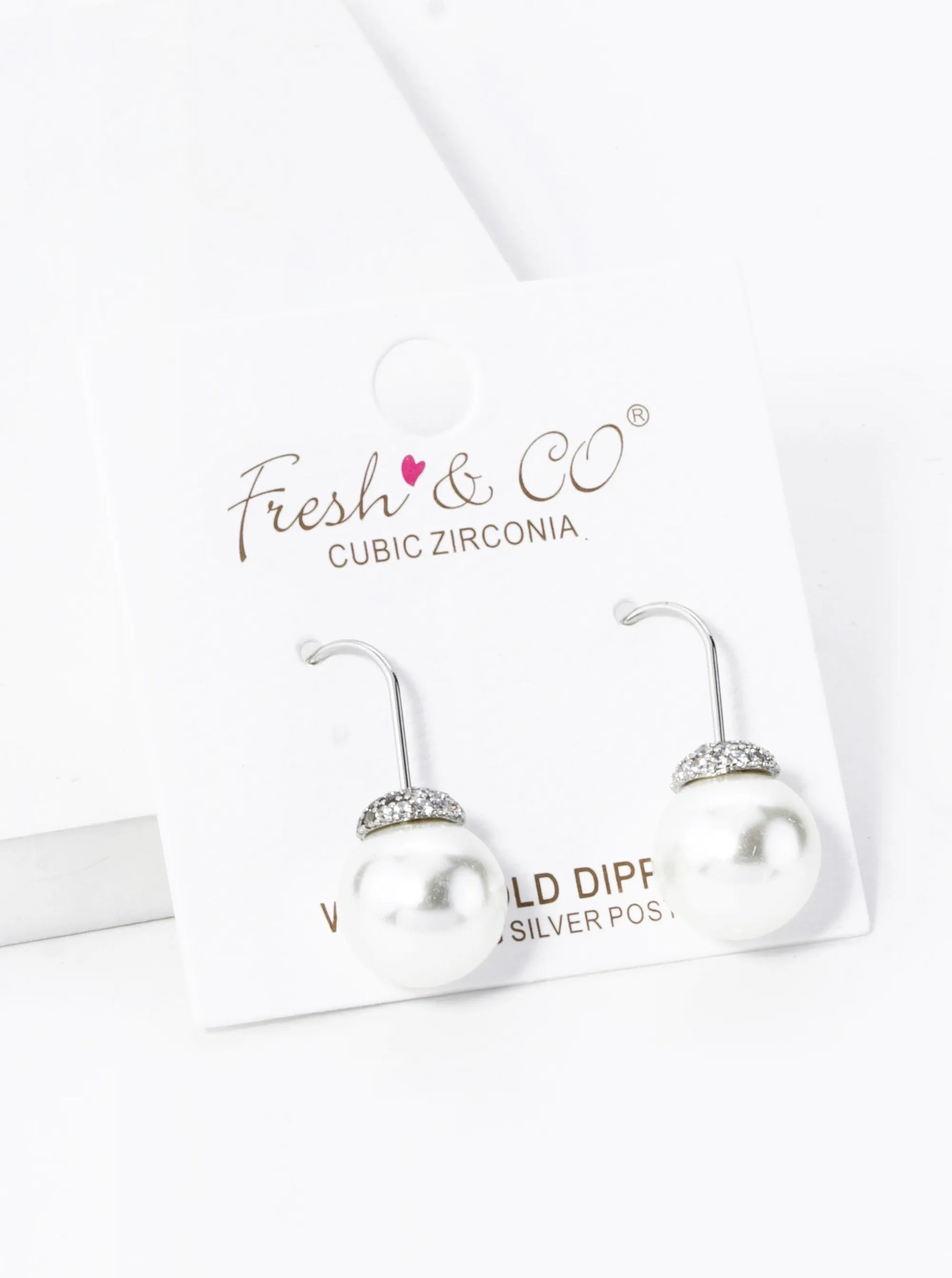 Featuring Breathtaking Cubic Zirconia Pave And A Lustrous 10mm Pearl Drop. Crafted From Brass And Adorned With CZ And Glass Stones, Available In Gold And Rhodium Variations.