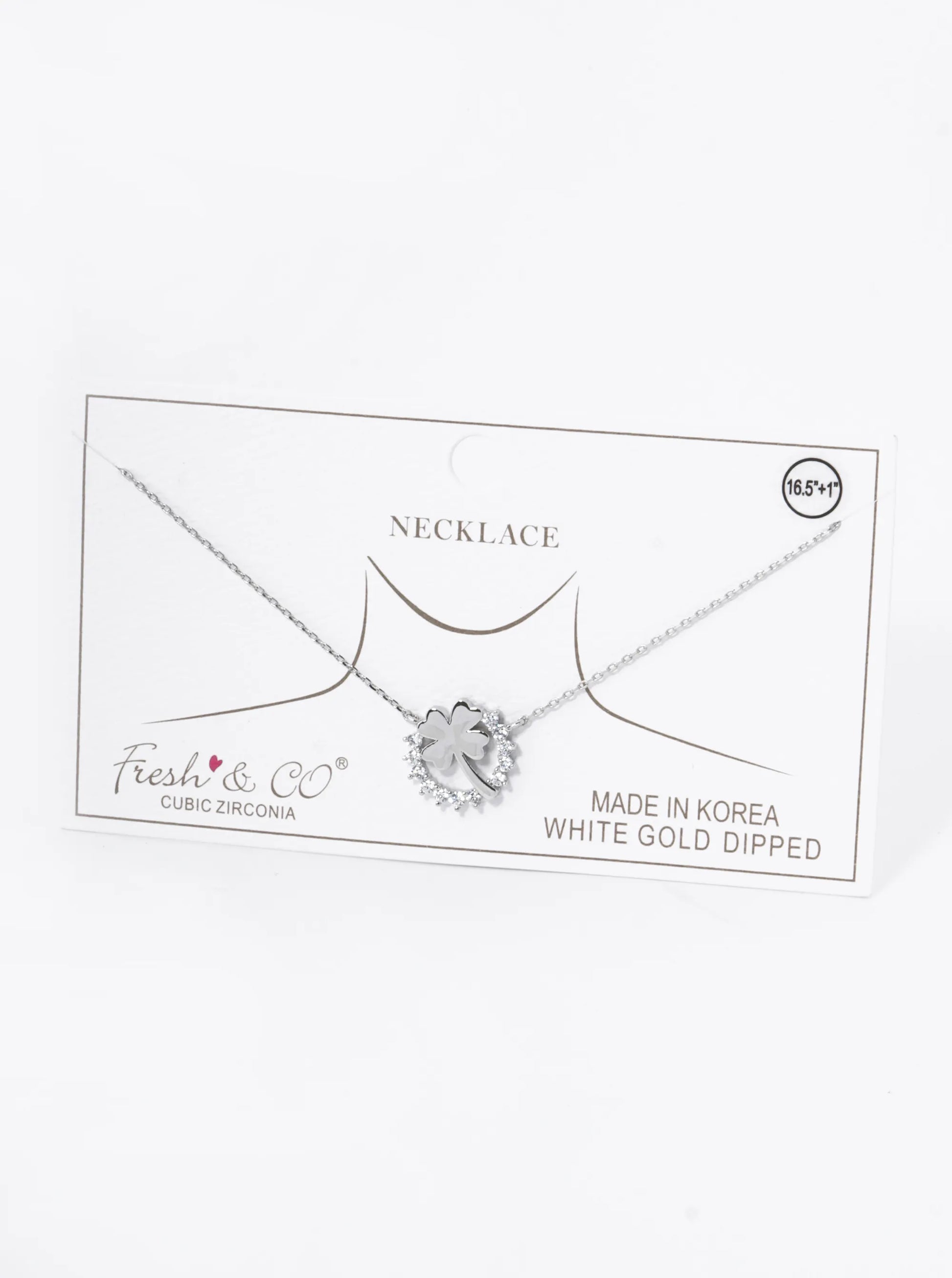 18K Gold Dipped Cubic Zirconia Pave Circle With Clover Pendant Necklace