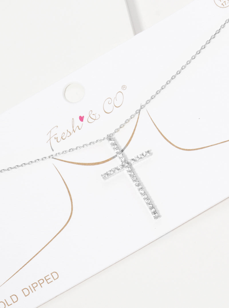 18K Gold Dipped Cubic Zirconia Pave Cross Pendant Delicate Necklace