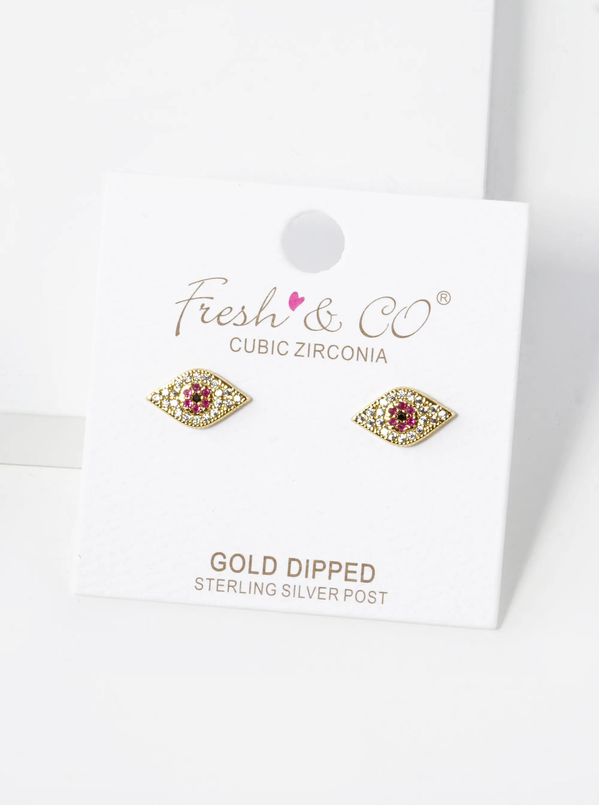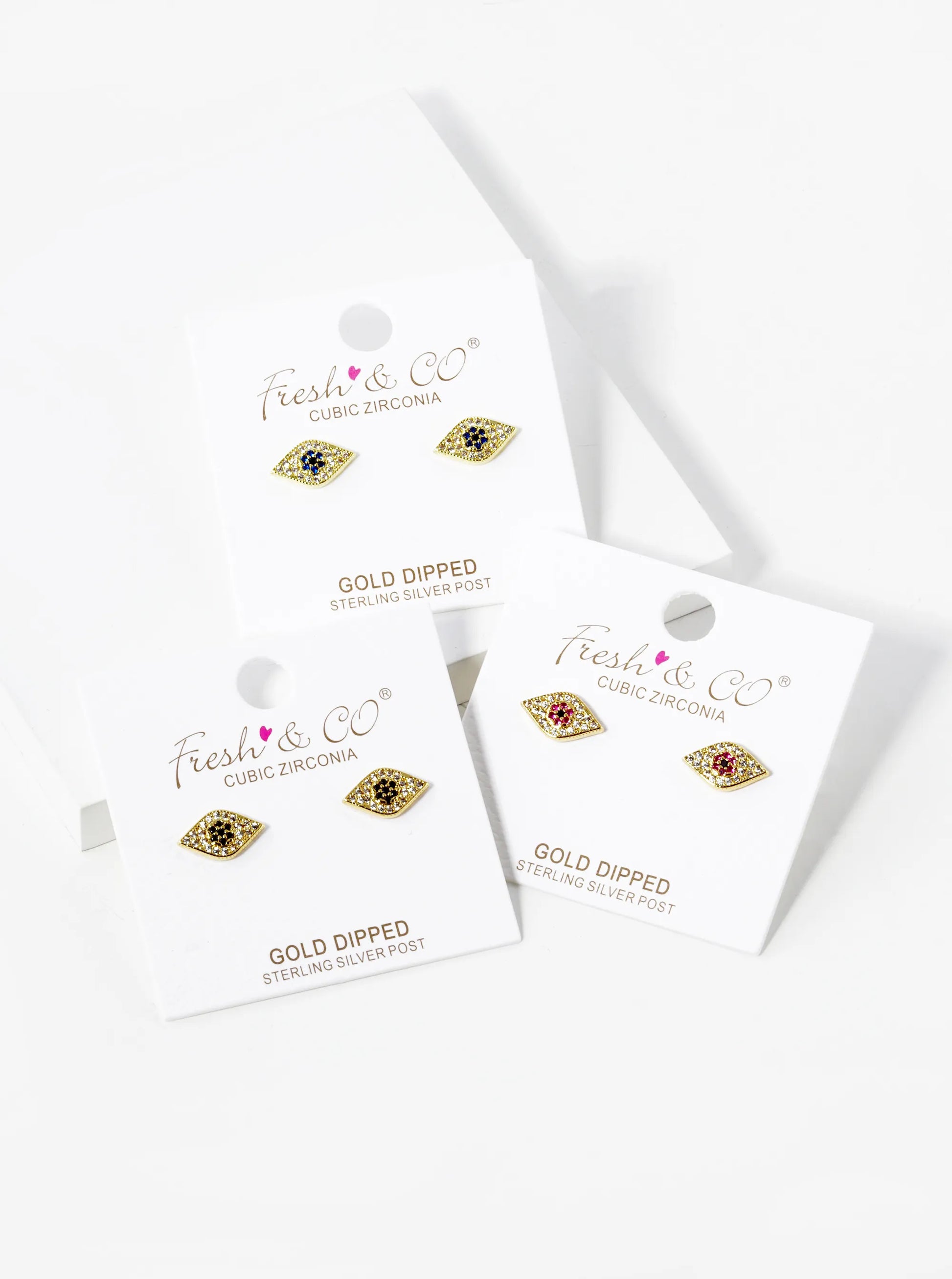 18K Gold Dipped Cubic Zirconia Pave Cross Stud Earrings