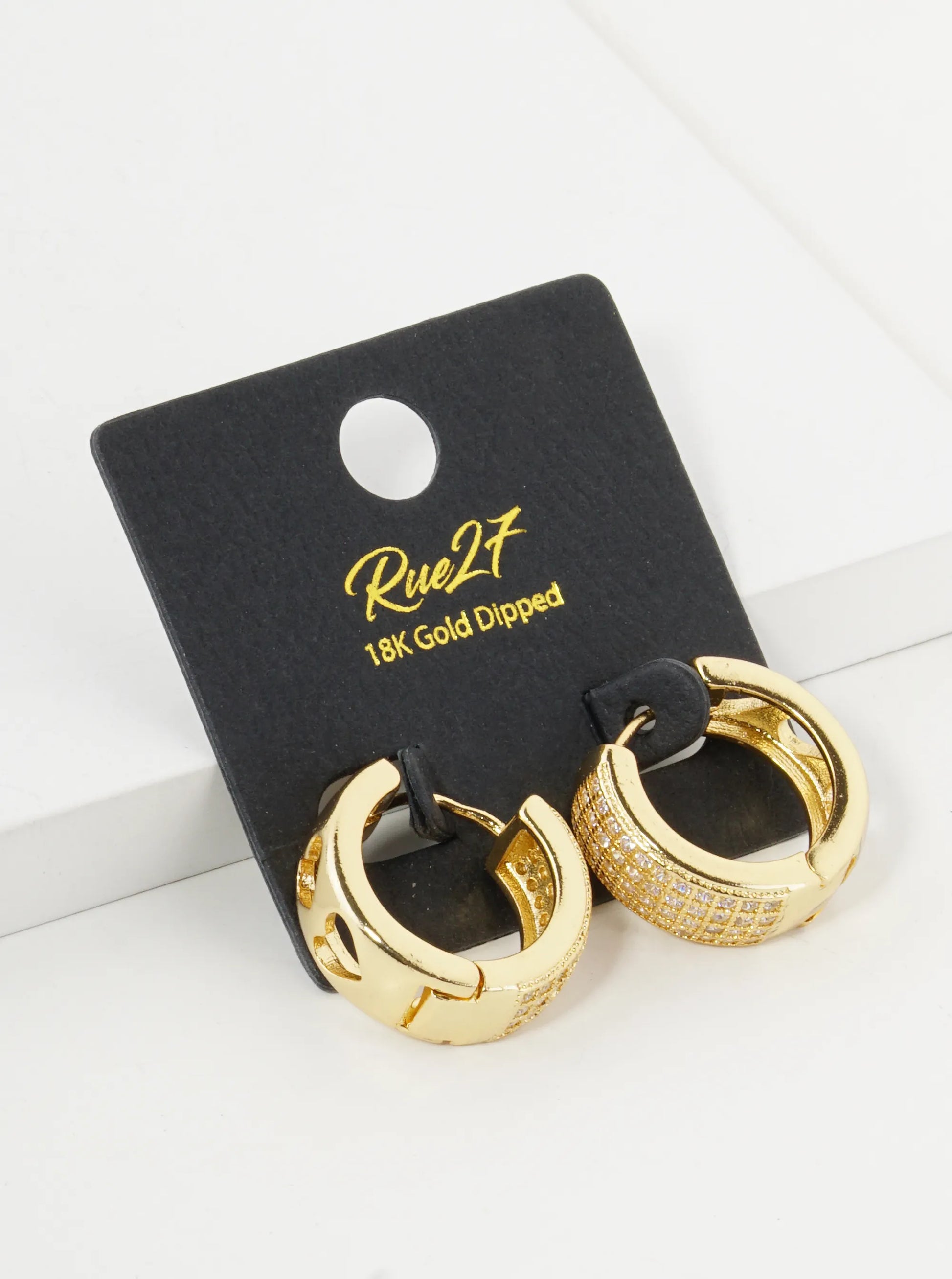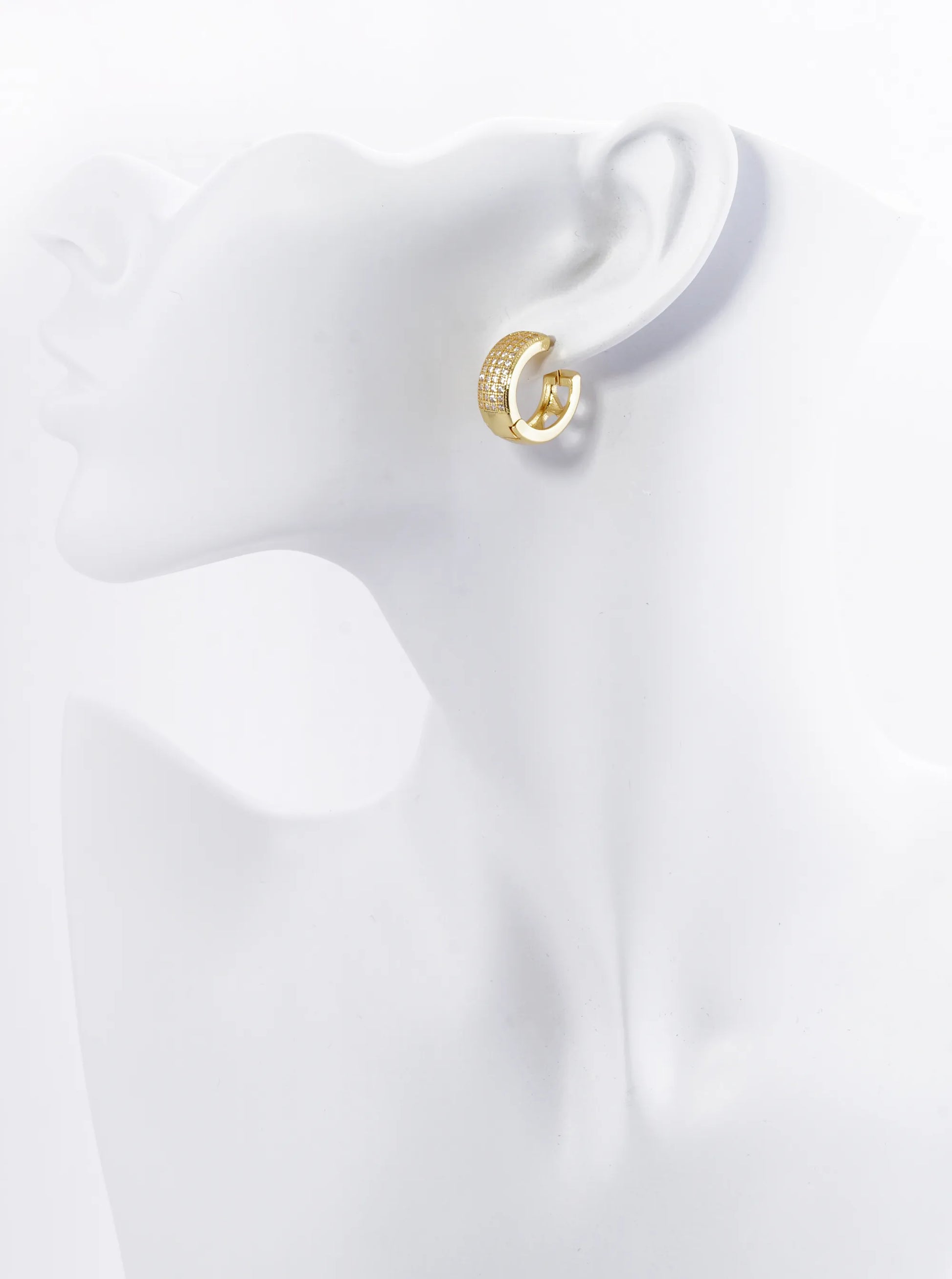 Indulge In The Luxurious Brilliance Of Our Cubic Zirconia Pave Huggie Earrings, Crafted With High-quality Brass And Available In Three Stunning Variations: 18K Gold Dipped, White Gold Dipped, And Rose Gold. The Perfect Combination Of Texture, Color, And Elegance.