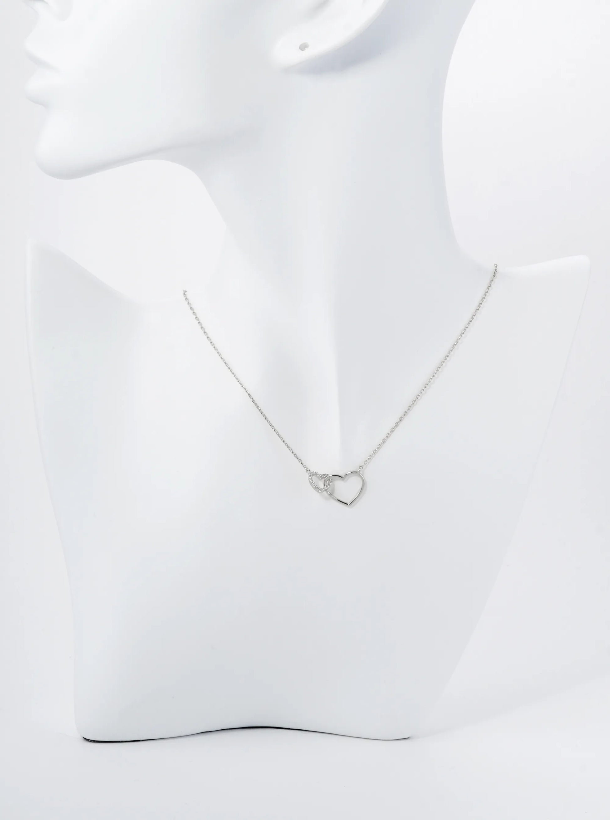 The Pendant Features Two Interlocking Hearts, Symbolizing Deep And Inseparable Love. The Hearts Are Intricately Adorned With Sparkling Cubic Zirconia Stones In A Pave Setting, Adding Brilliance And Sophistication To The Design. The Interlocking Hearts Represent The Unbreakable Bond Between Two Individuals.
