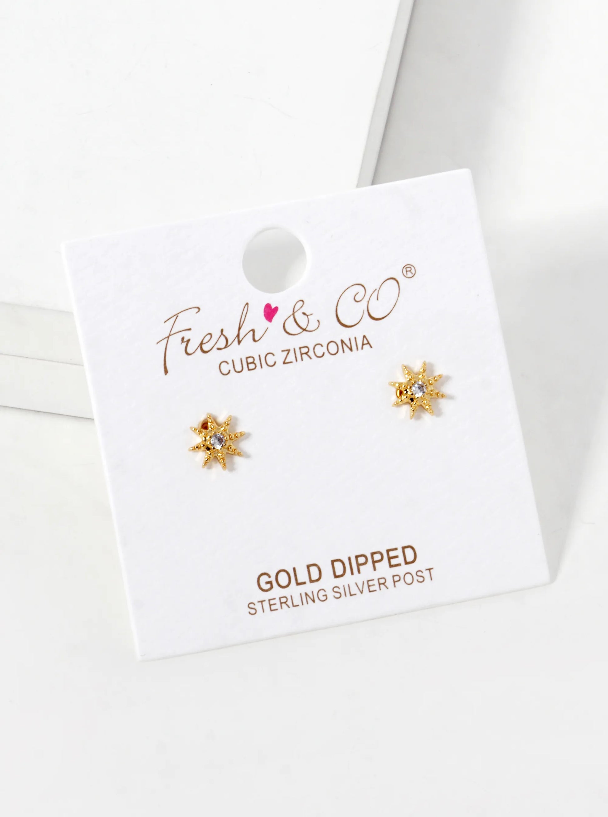 18K Gold Dipped CZ Dainty Sunburst Stud Earrings