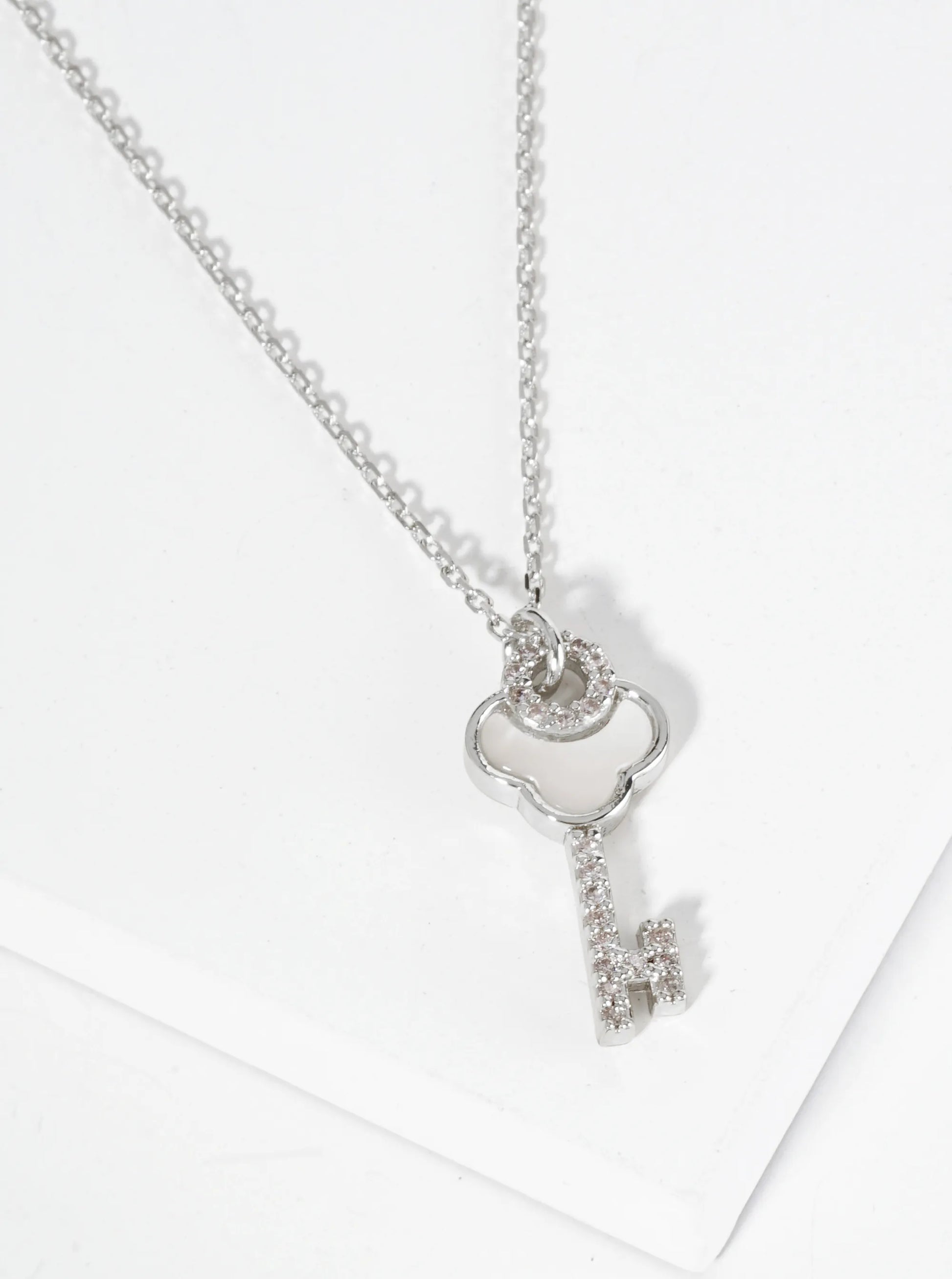 The Necklace Is A Beautiful And Enchanting Piece Of Jewelry. The Pendant Is Designed In The Shape Of A Key, Featuring A Stunning Mother Of Pearl Inlay That Radiates A Subtle Iridescence. Adorned With Cubic Zirconia Accents, The Necklace Sparkles Brilliantly And Adds A Touch Of Elegance.