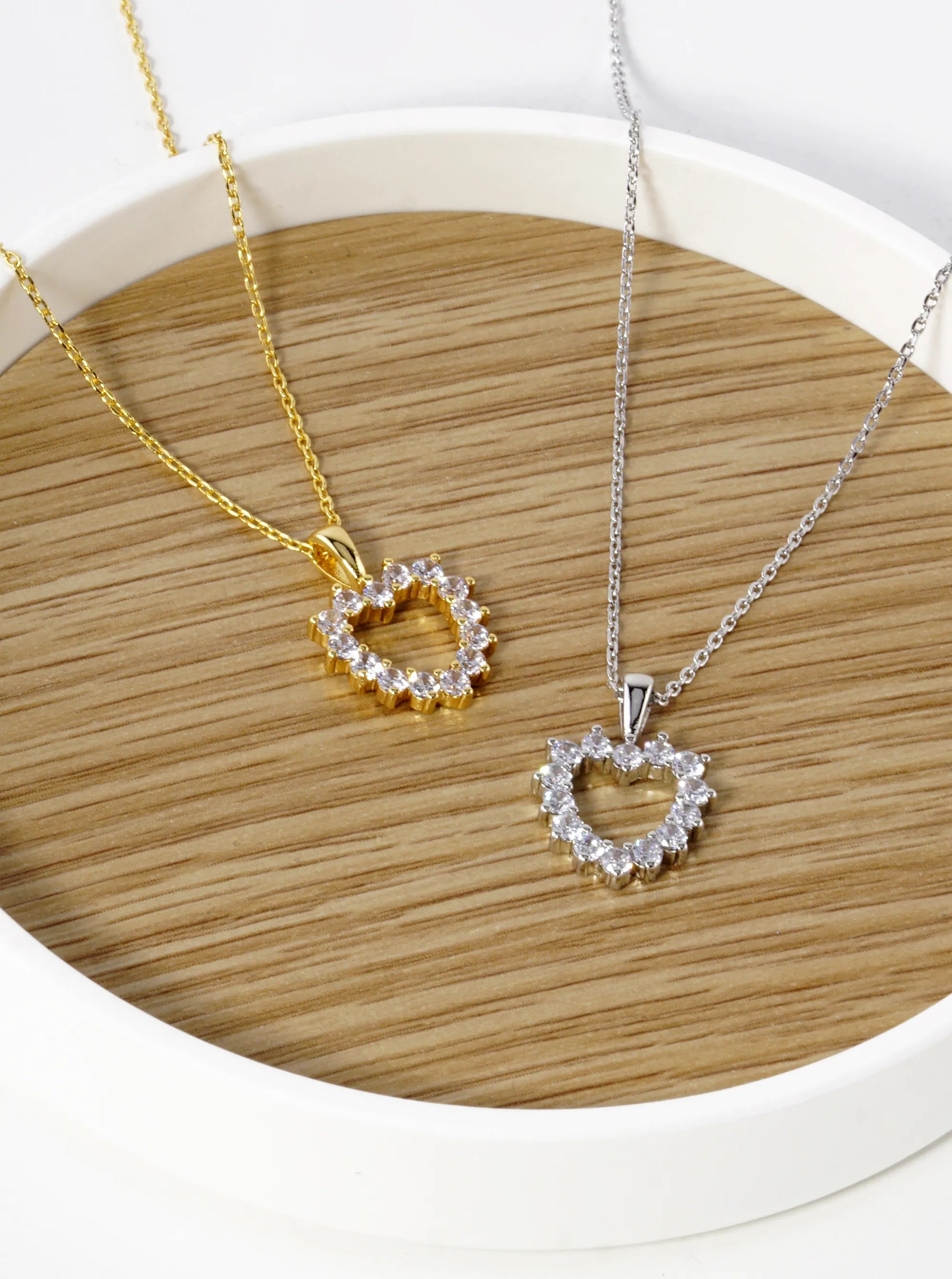 18K Gold Dipped CZ Pave 13mm Heart Pendant Necklace