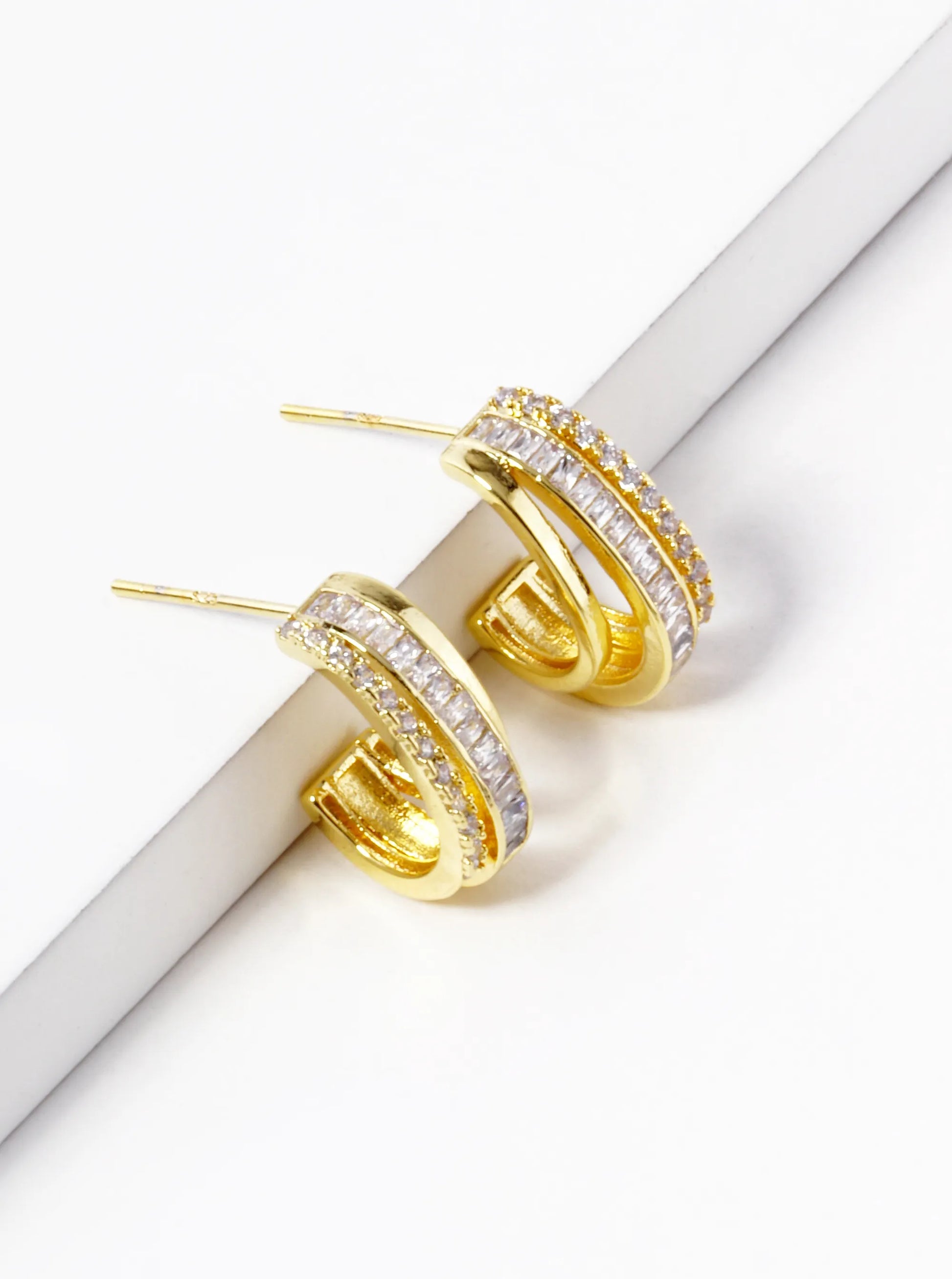 Glamorize Your Look With These Luxurious Hoop Earrings! Perfect To Transition From Day To Night, These Earrings Feature A Brilliant Gold Shine, Clear CZ Pave, And Layered Details For An Enhanced Look. Sleek And Lightweight, These Earrings Will Be Your Go-to Statement Piece In Every Season!