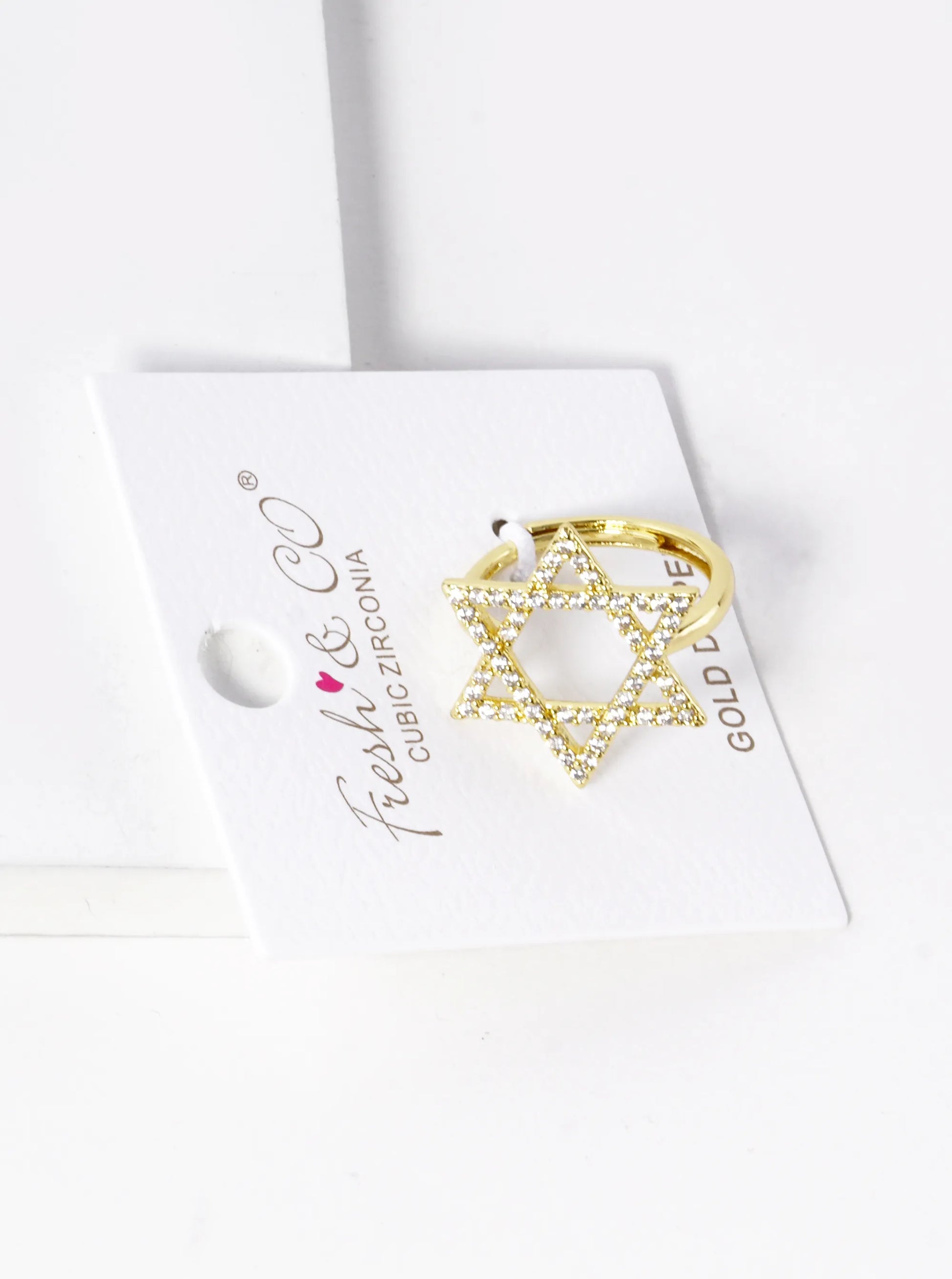 18K Gold Dipped CZ Pave 22mm Star Of David Adjustable Ring
