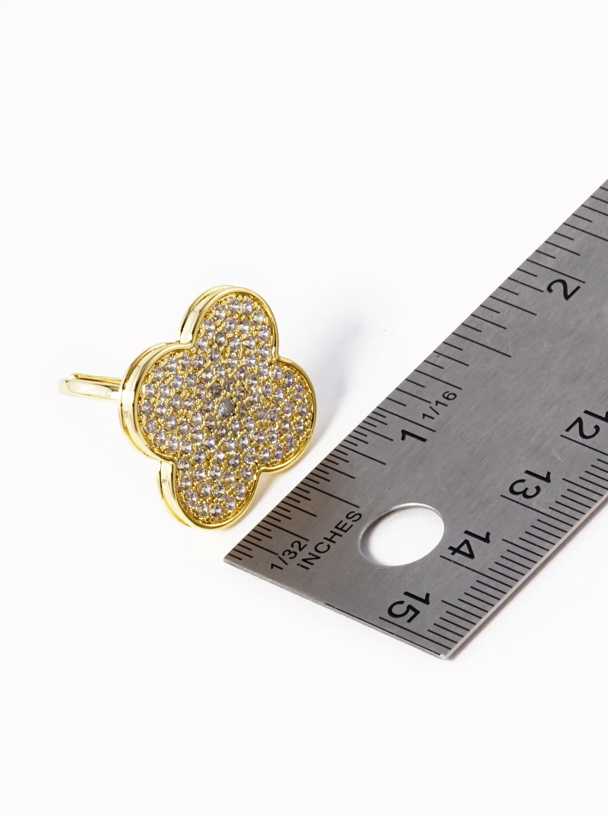 18k Gold Dipped CZ Pave 25mm Quatrefoil Adjustable Ring