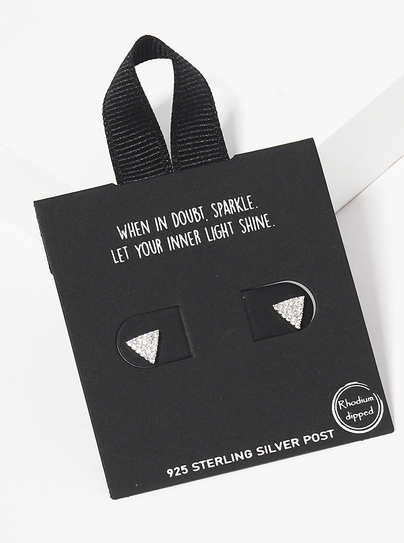 18K Gold Dipped CZ Pave 6mm Triangle Stud Earrings
