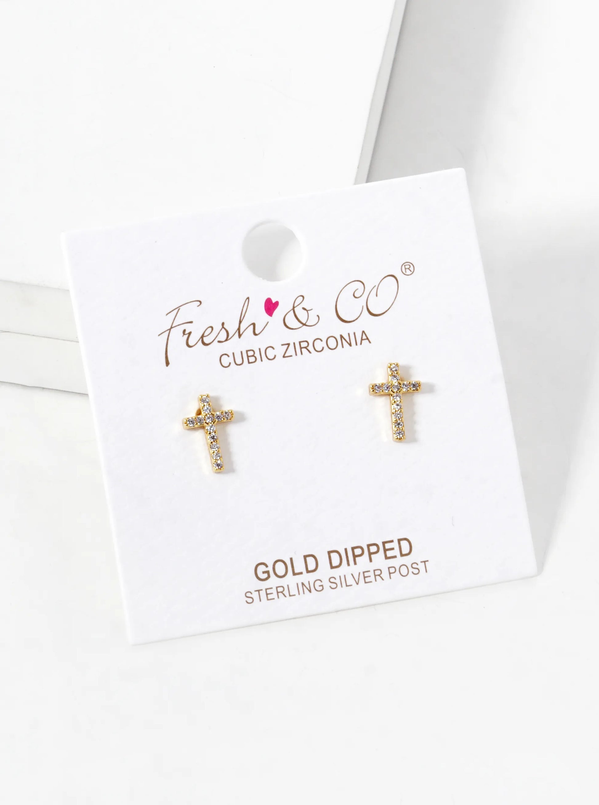 18k Gold Dipped CZ Pave 9mm Cross Stud Earrings
