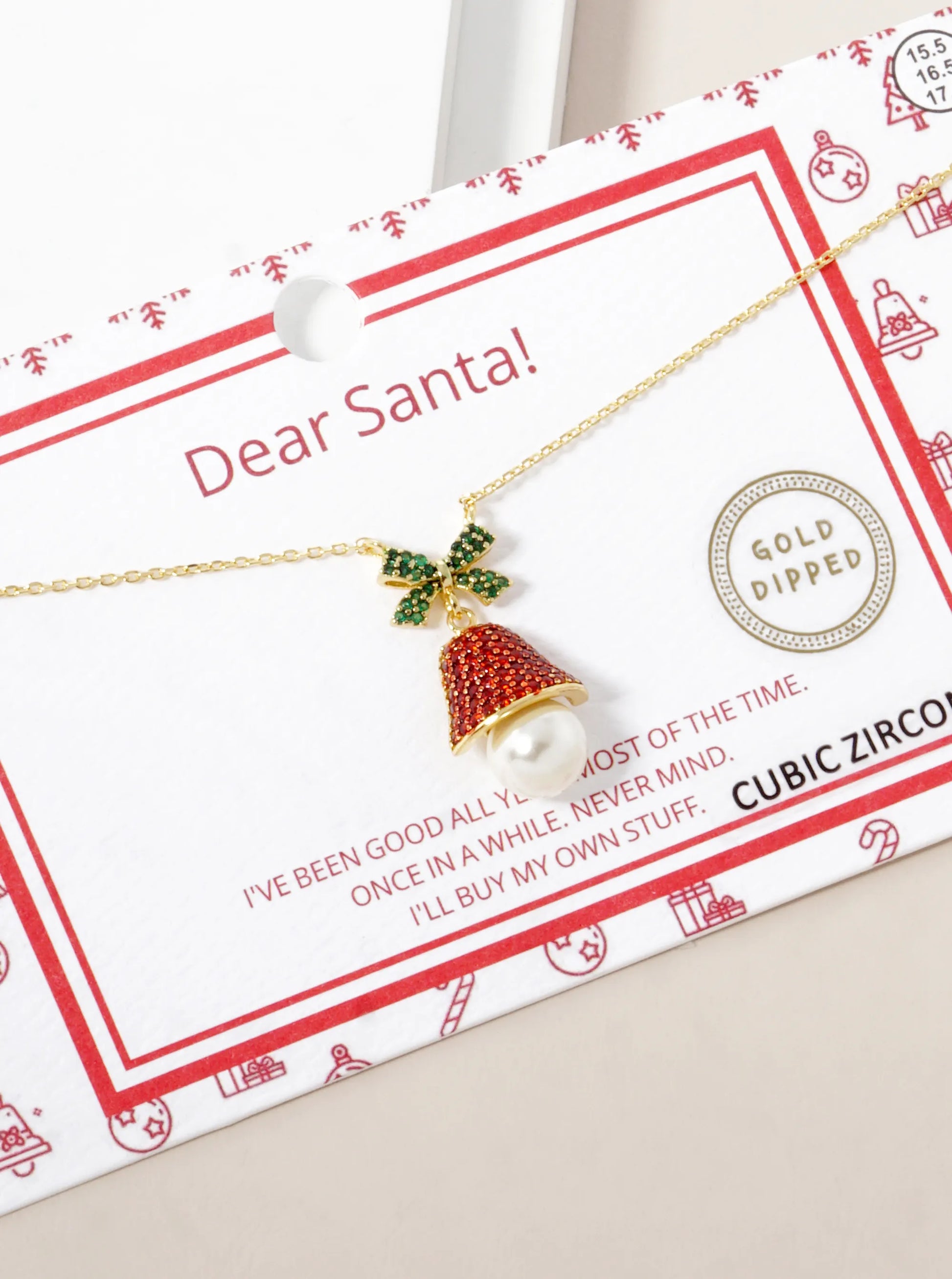 18K Gold Dipped CZ Pave Christmas Bell Pendant Necklace