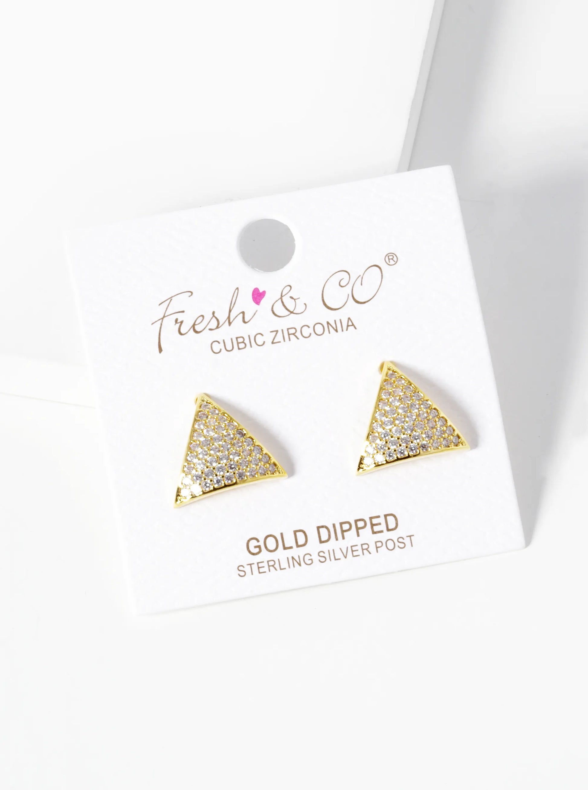 18k Gold Dipped CZ Pave Curved Triangle Stud Earrings