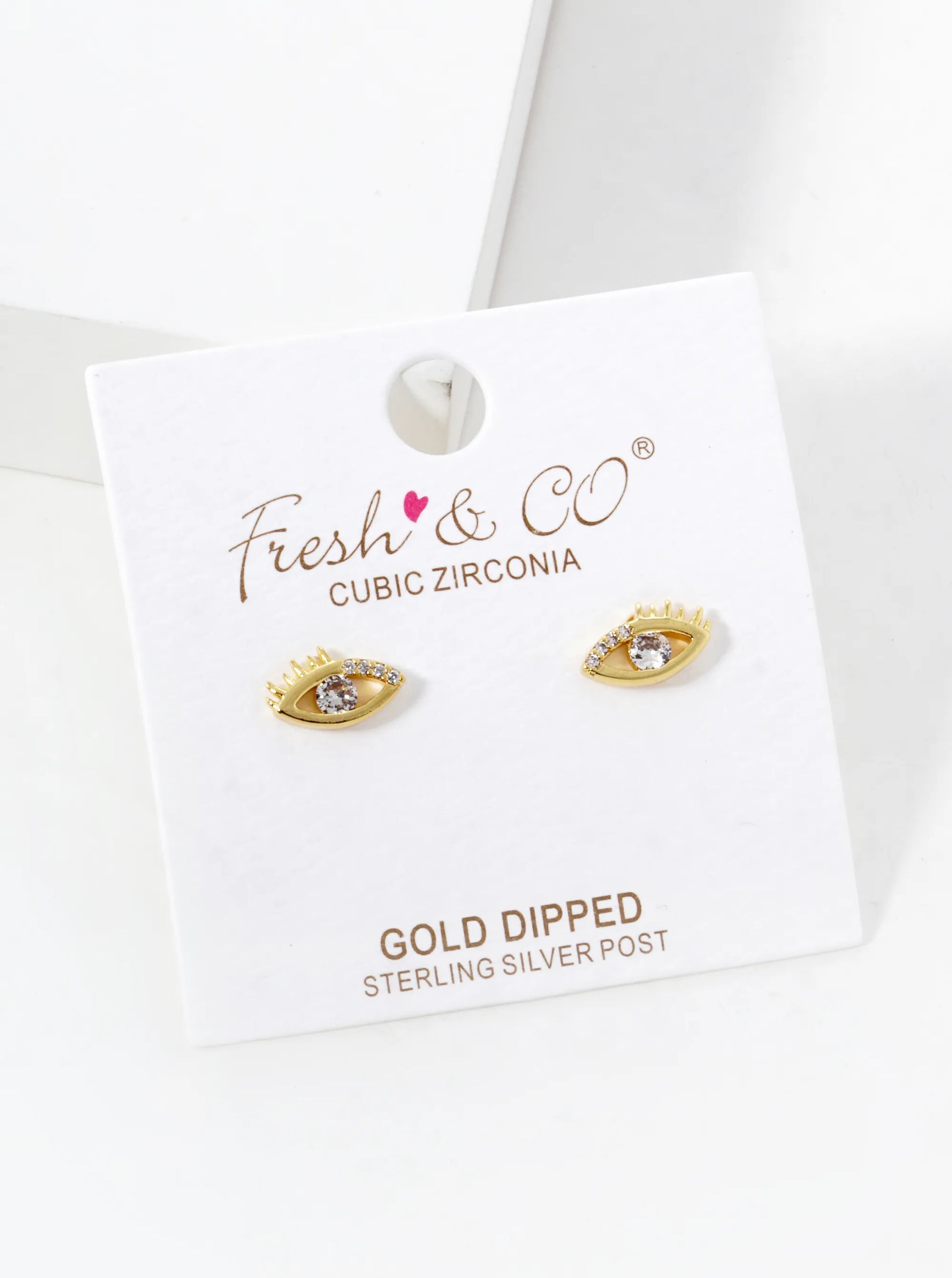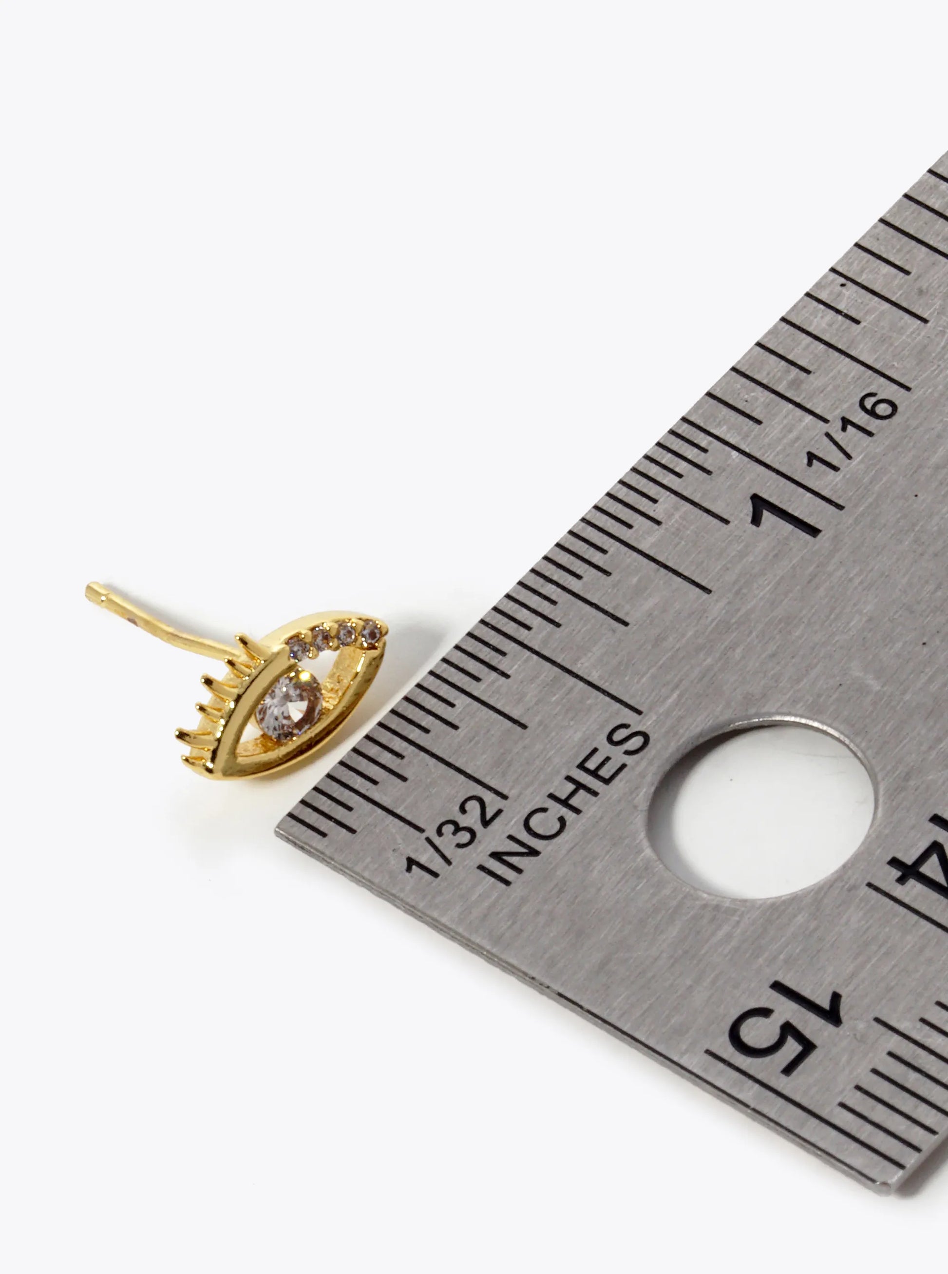 18k Gold Dipped CZ Pave Dainty Evil Eye Stud Earrings