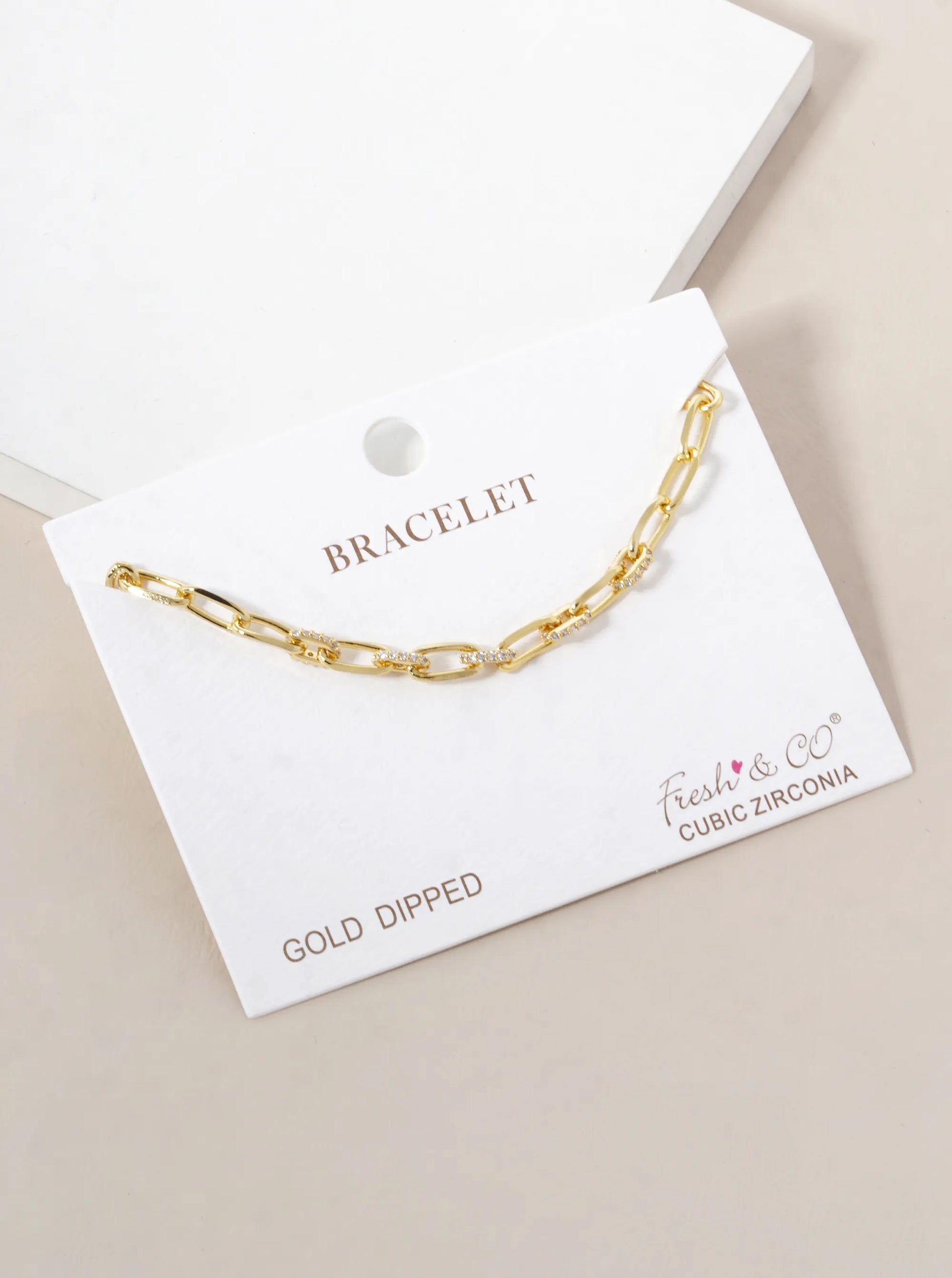 18k Gold Dipped CZ Pave Delicate Link Chain Bracelet