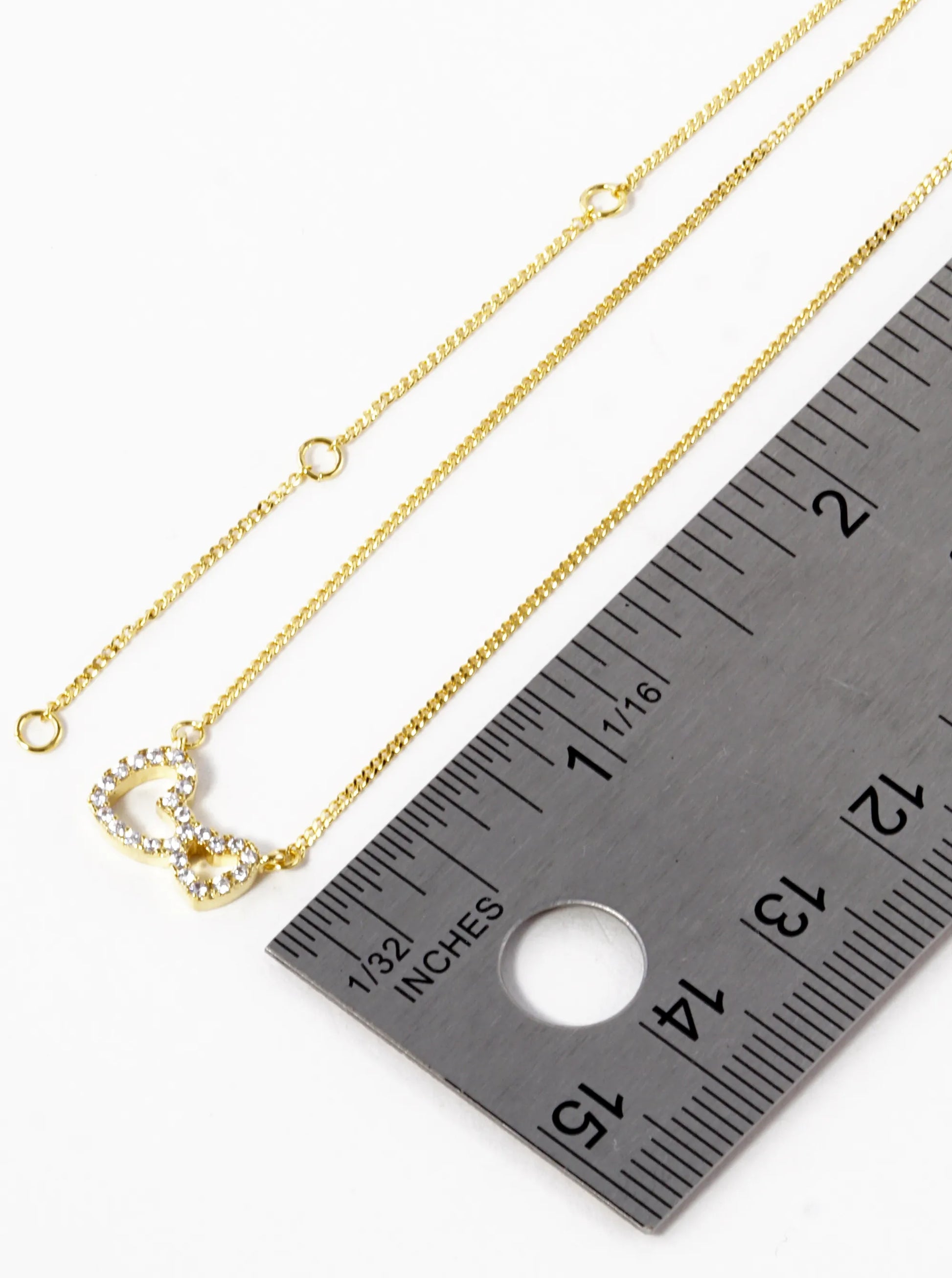 18K Gold Dipped CZ Pave Double Heart Pendant Necklace