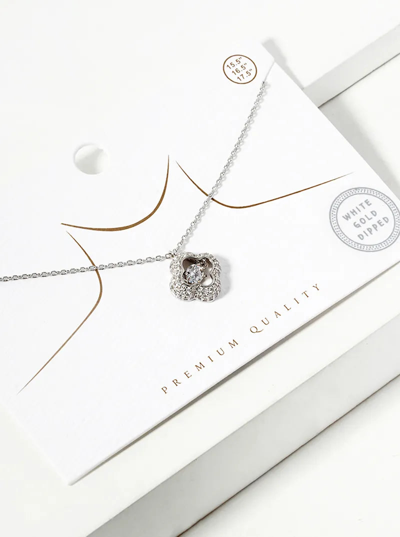 18k Gold Dipped CZ Pave Double Quatrefoil Pendant Necklace