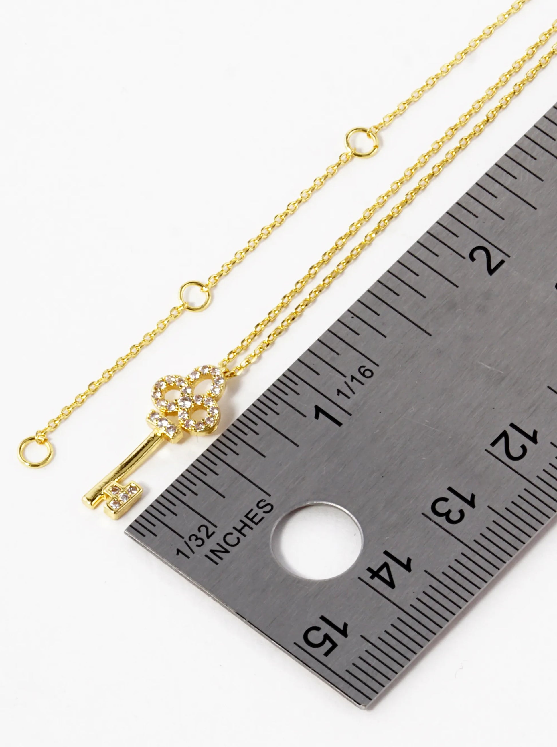 18K Gold Dipped CZ Pave Key Pendant Necklace