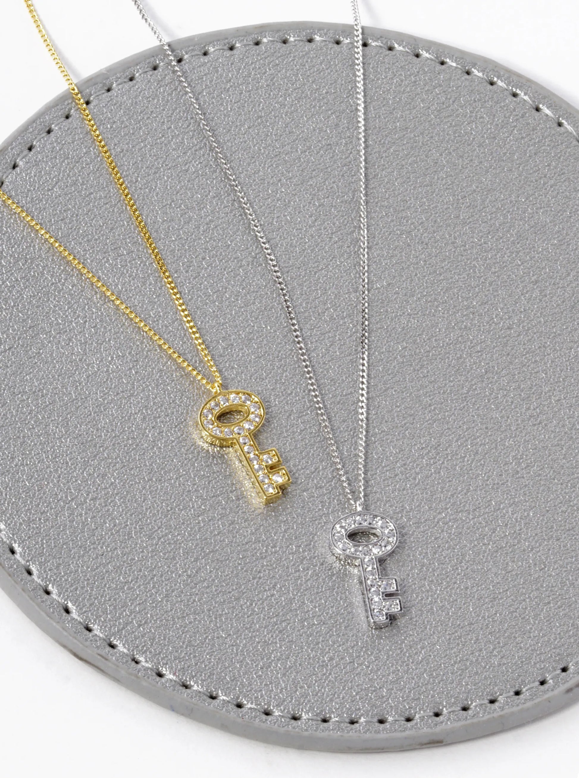 18K Gold Dipped CZ Pave Key Pendant Necklace