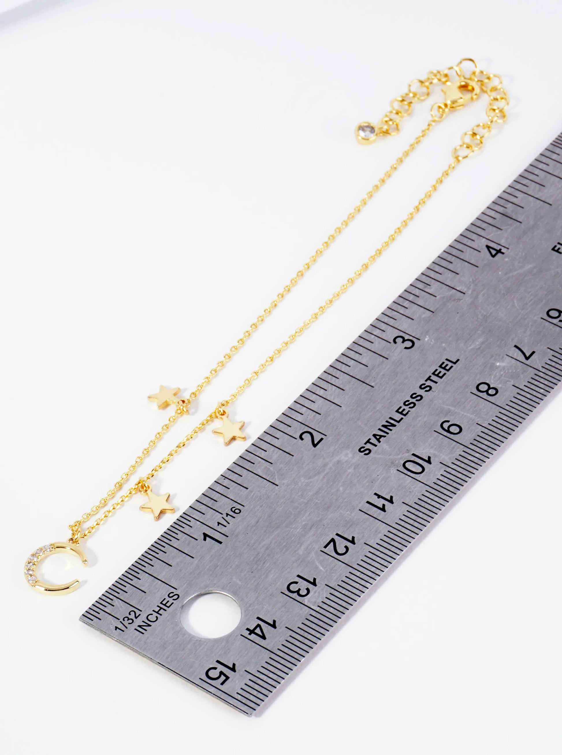 18K Gold Dipped CZ Pave Moon And Star Charm Brass Chain Anklet