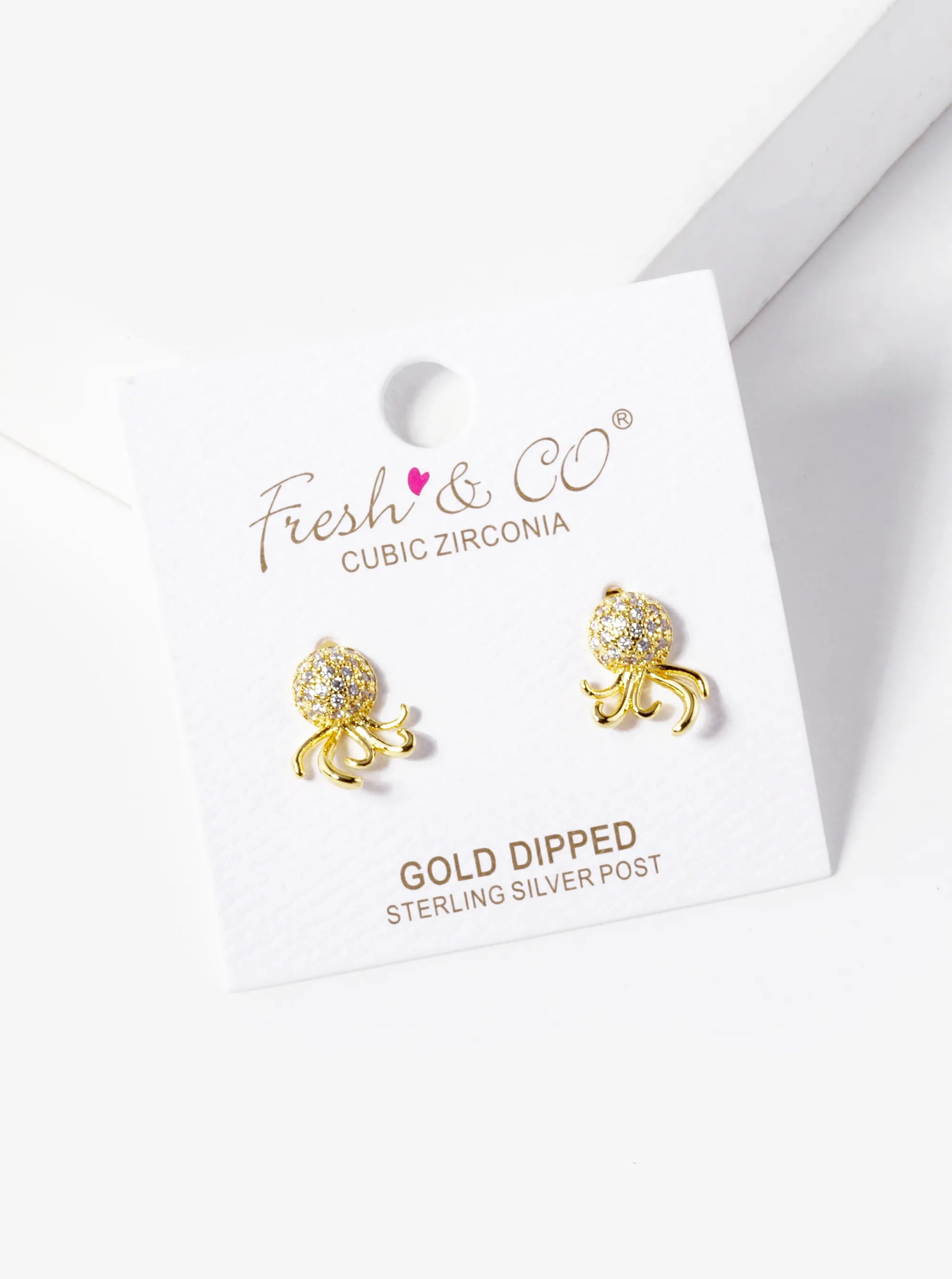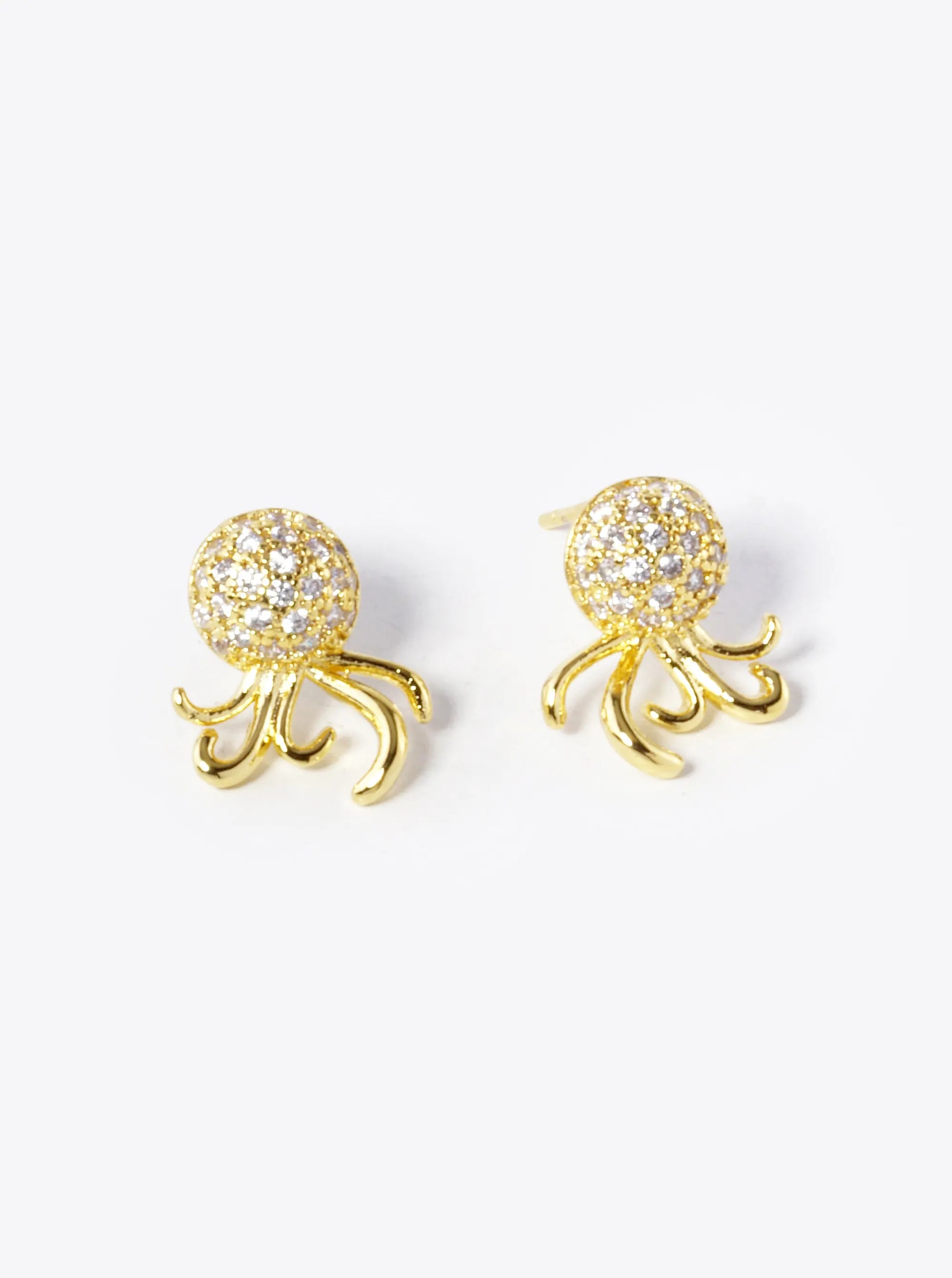 18k Gold Dipped CZ Pave Octopus Stud Earrings