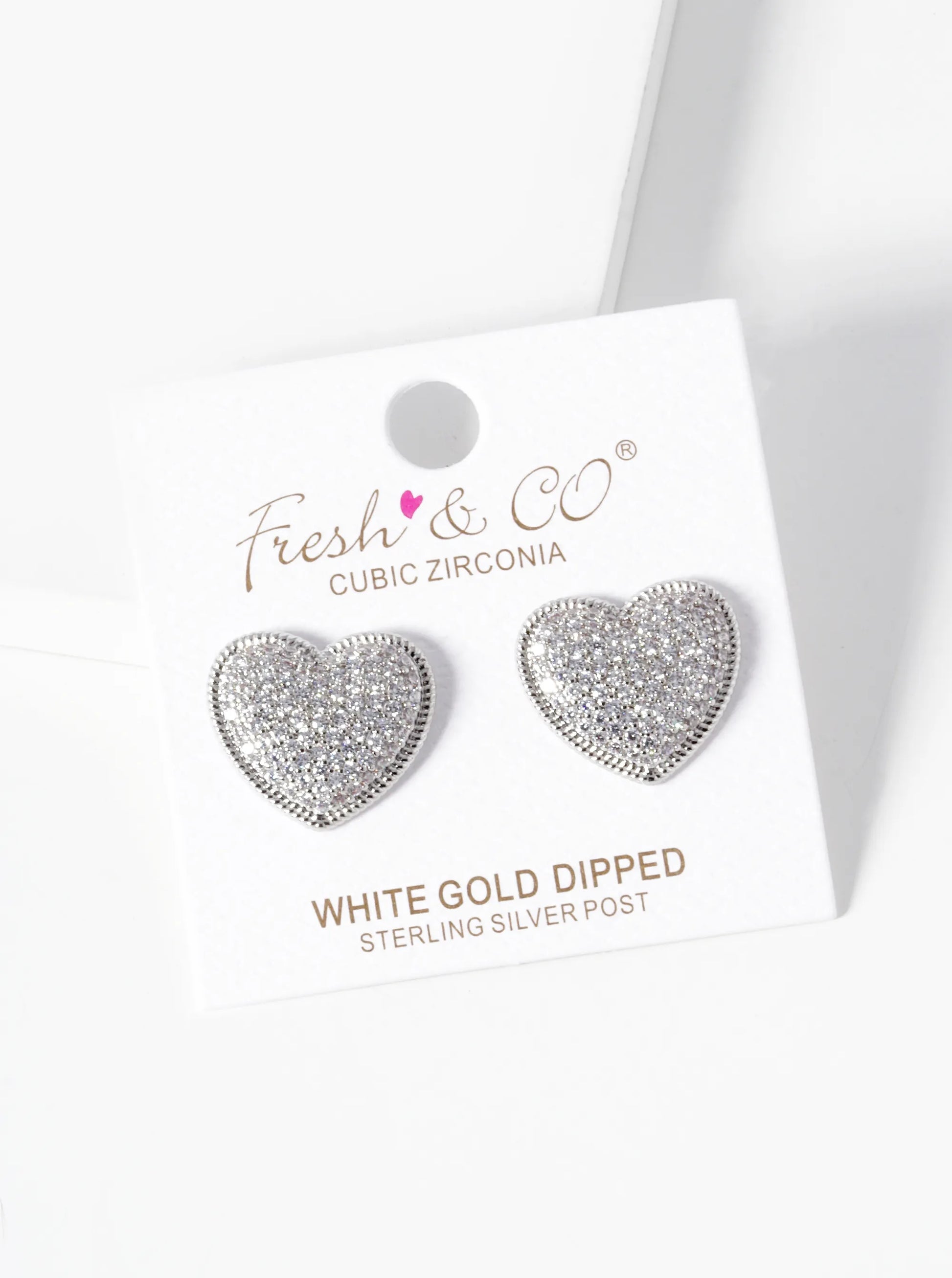 18k Gold Dipped CZ Pave Puffy Heart Stud Earrings