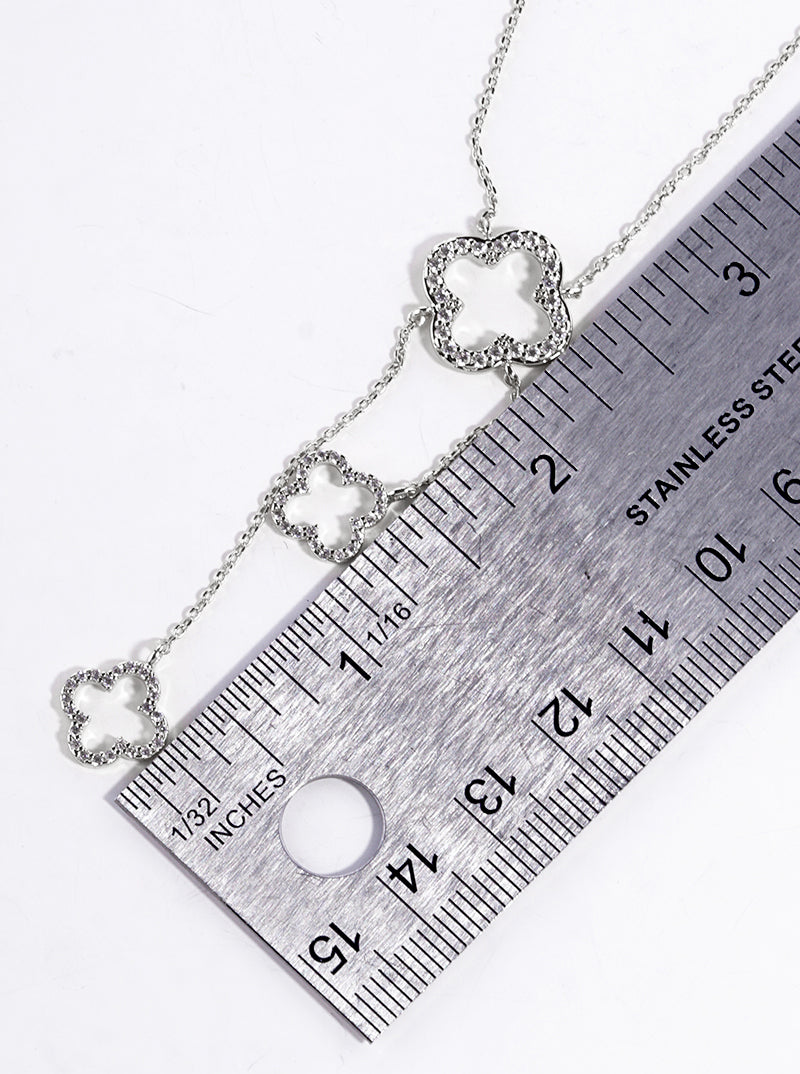 18k Gold Dipped CZ Pave Quatrefoil Pendant 36 Inch Long Station Necklace