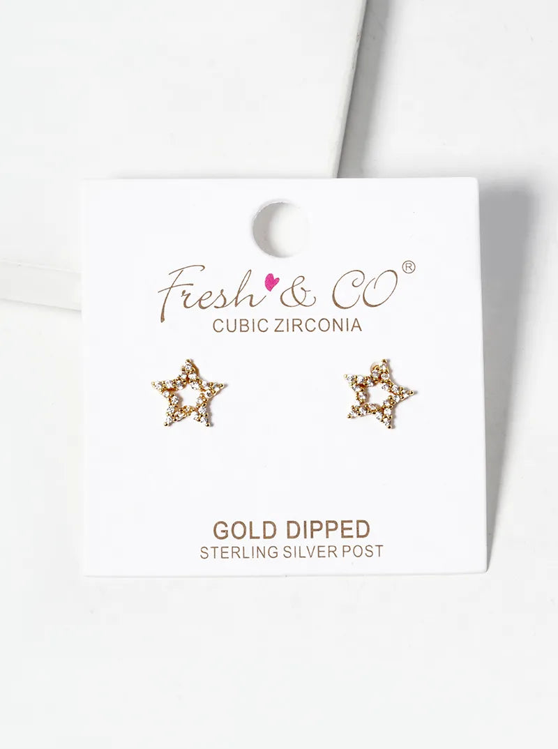 18k Gold Dipped CZ Pave Star Post Stud Earrings