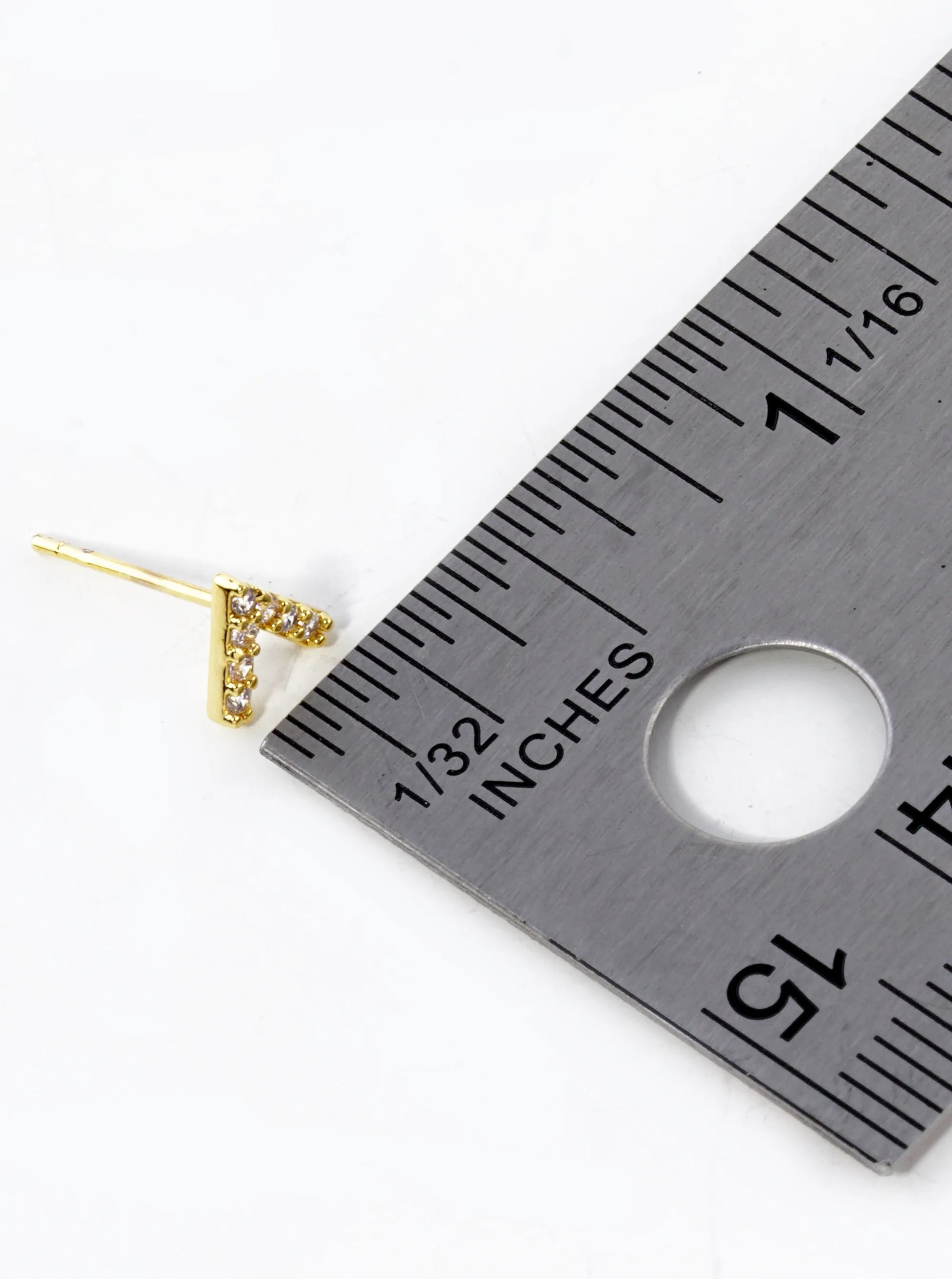 18K Gold Dipped CZ Pave Triangle Shape Stud Earrings