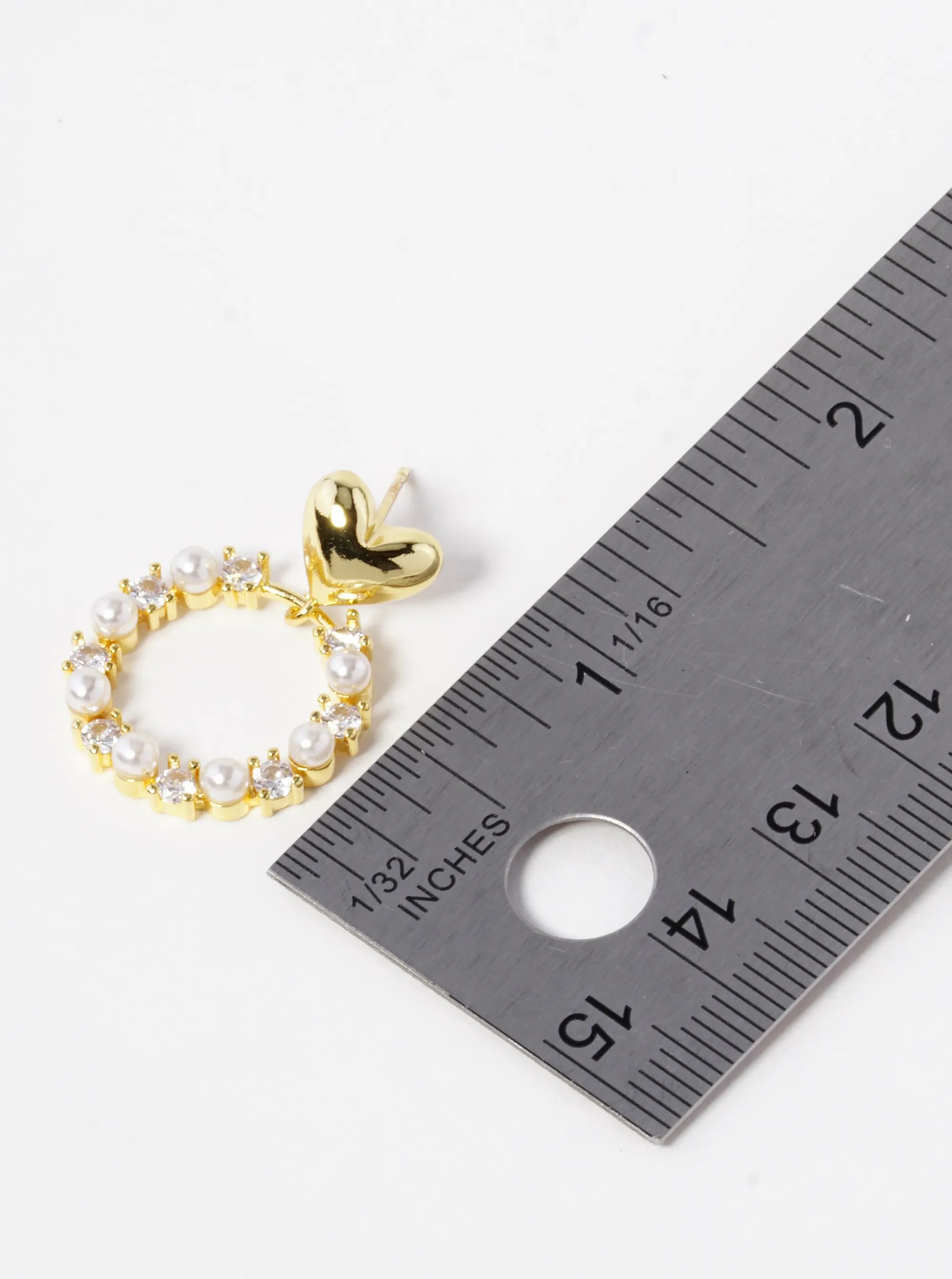 18k Gold Dipped CZ Pearl Beaded Circle Drop Heart Dangle Earrings