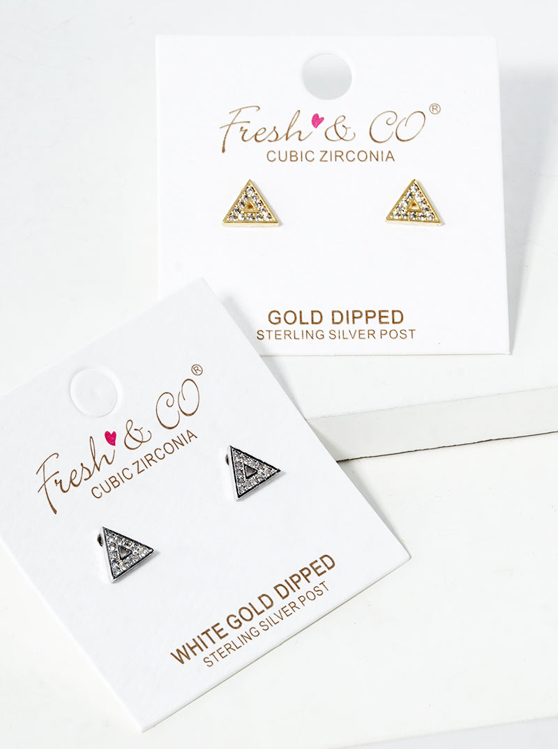 18K Gold Dipped CZ Stone Flower Post Stud Earrings