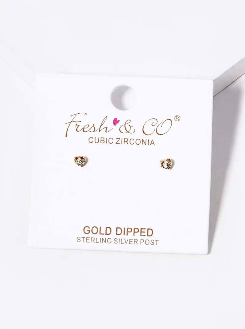 18k Gold Dipped Dainty CZ Heart Post Stud Earrings