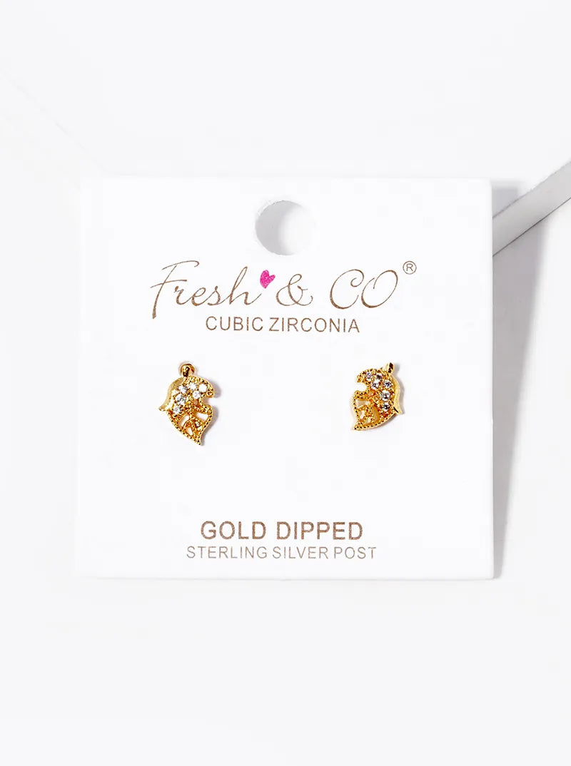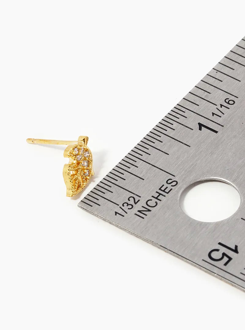 18k Gold Dipped Delicate CZ Pave Leaf Stud Earrings