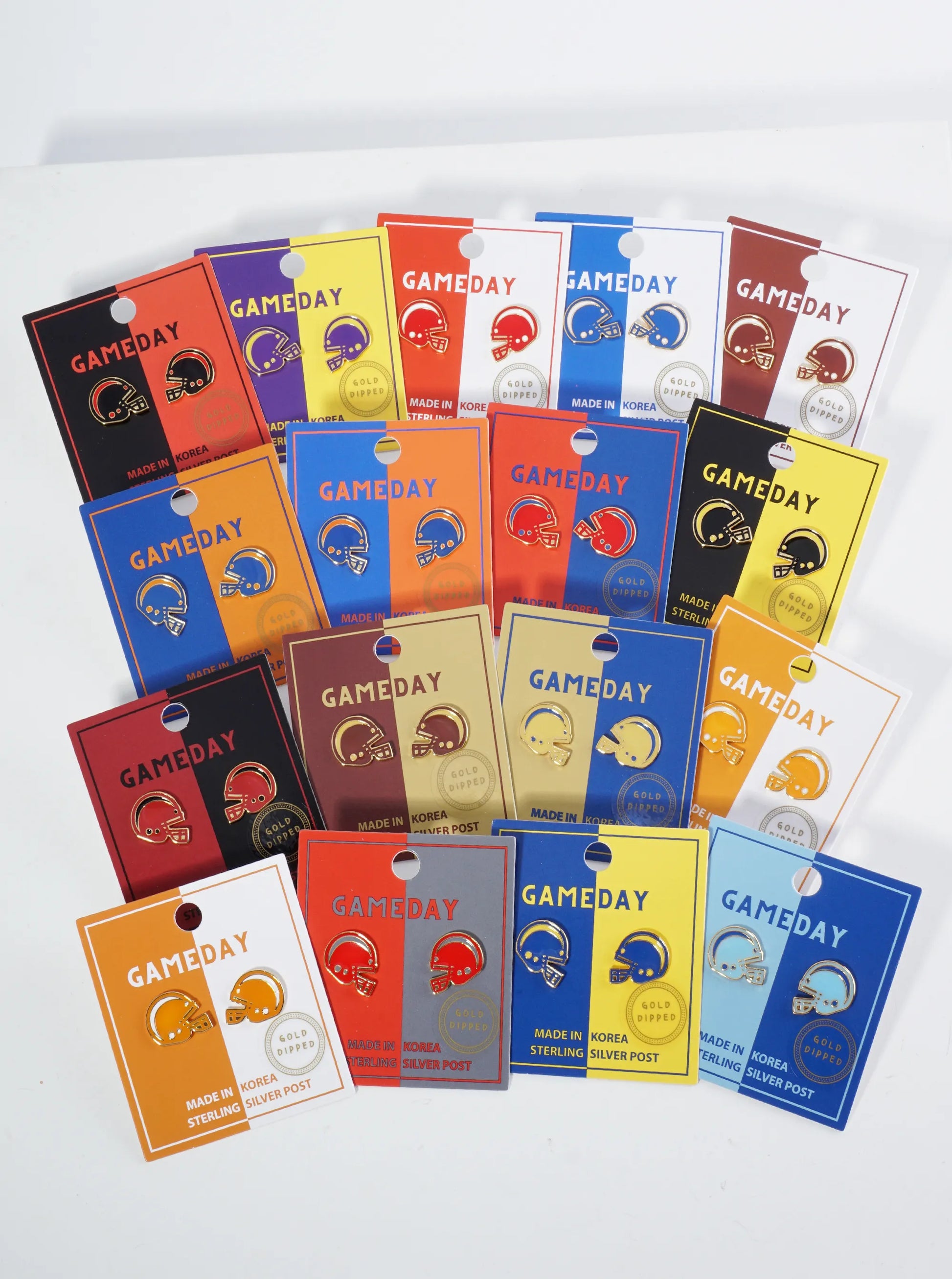 18K Gold Dipped Enamel Football Helmet Game Day Stud Earrings