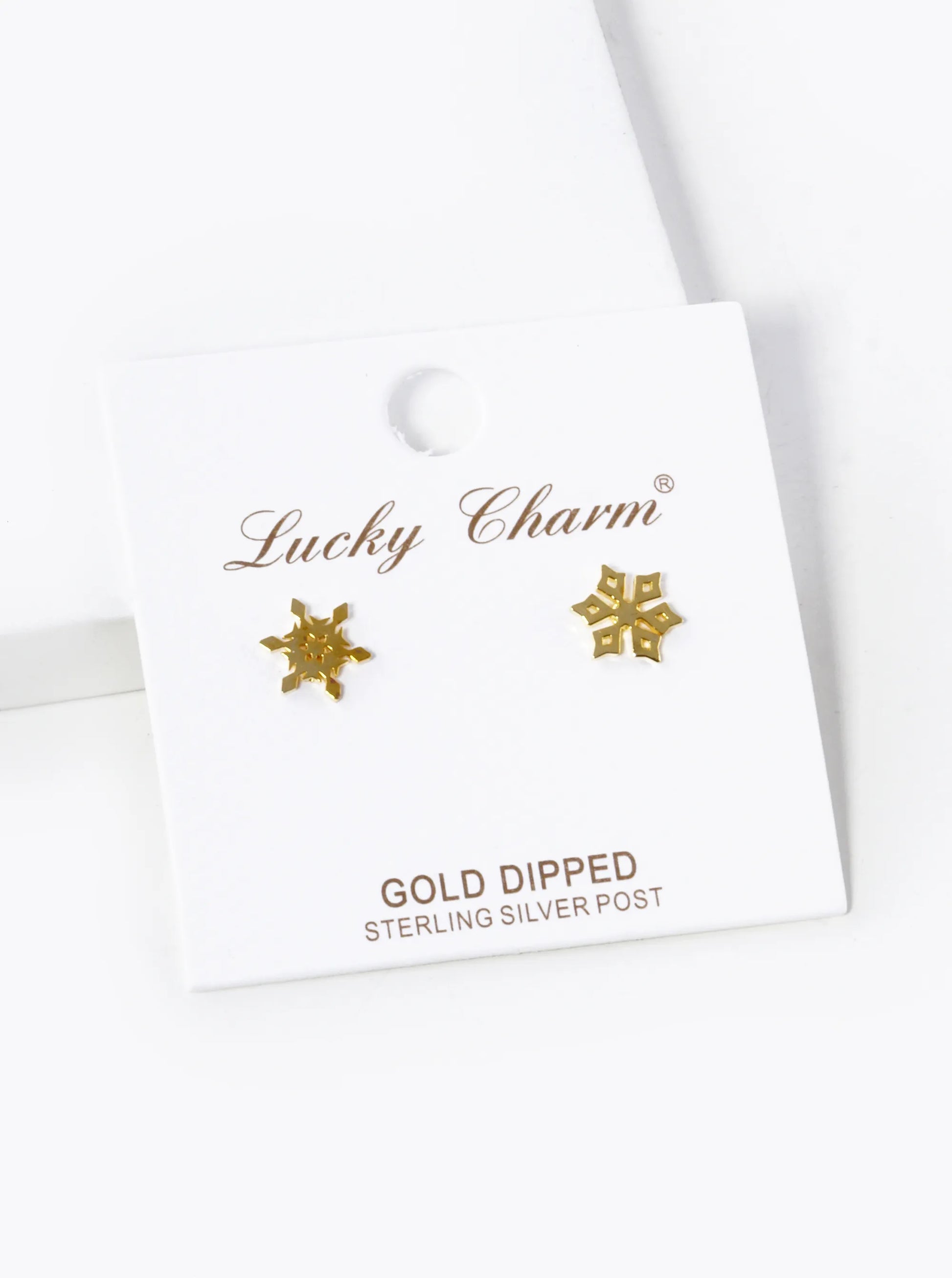 18K Gold Dipped Flat Brass 4-Leaf Clover Stud Earrings