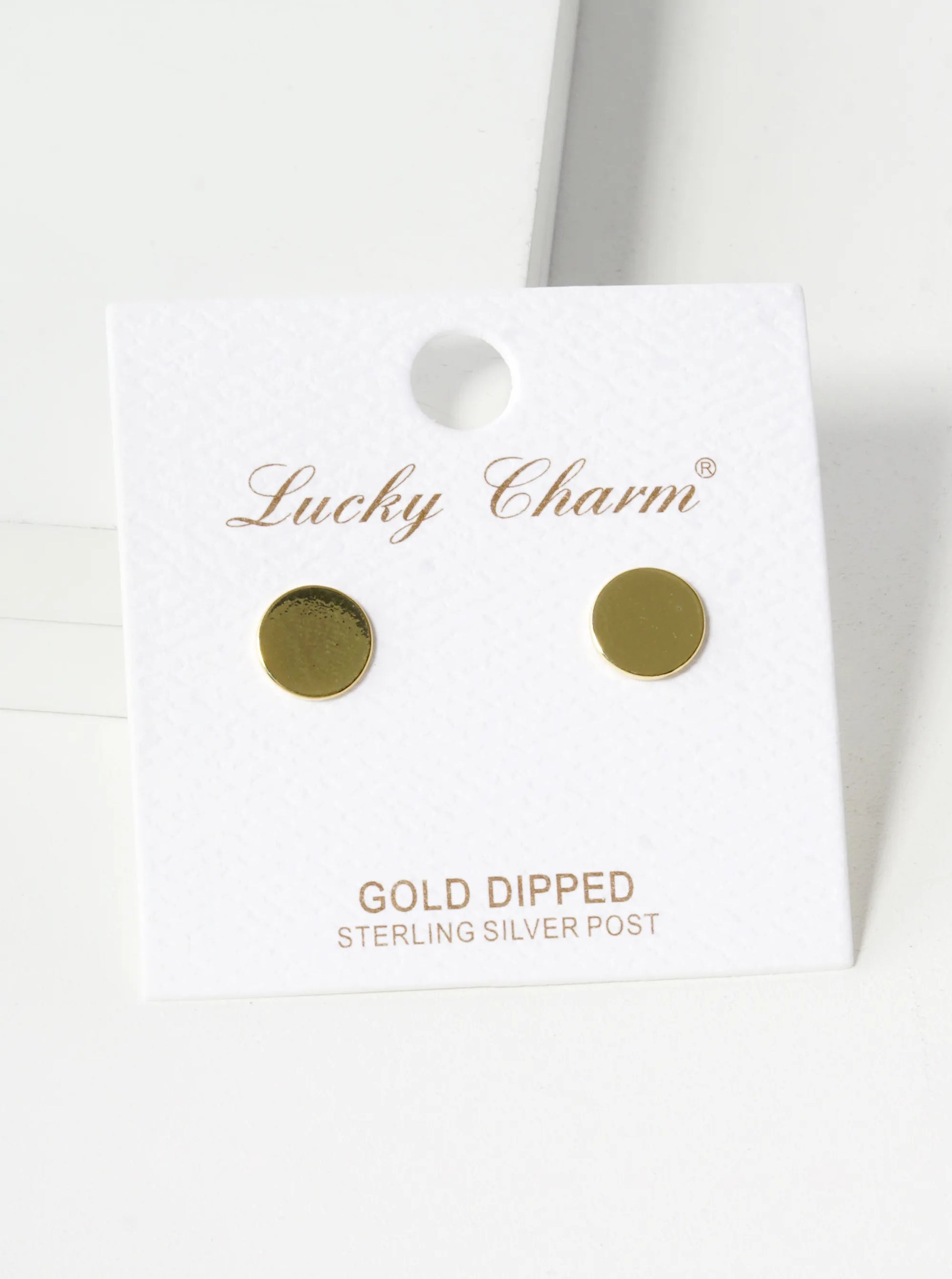 18K Gold Dipped Minimalist 8mm Brass Flat Round Sterling Silver Post Stud Earrings