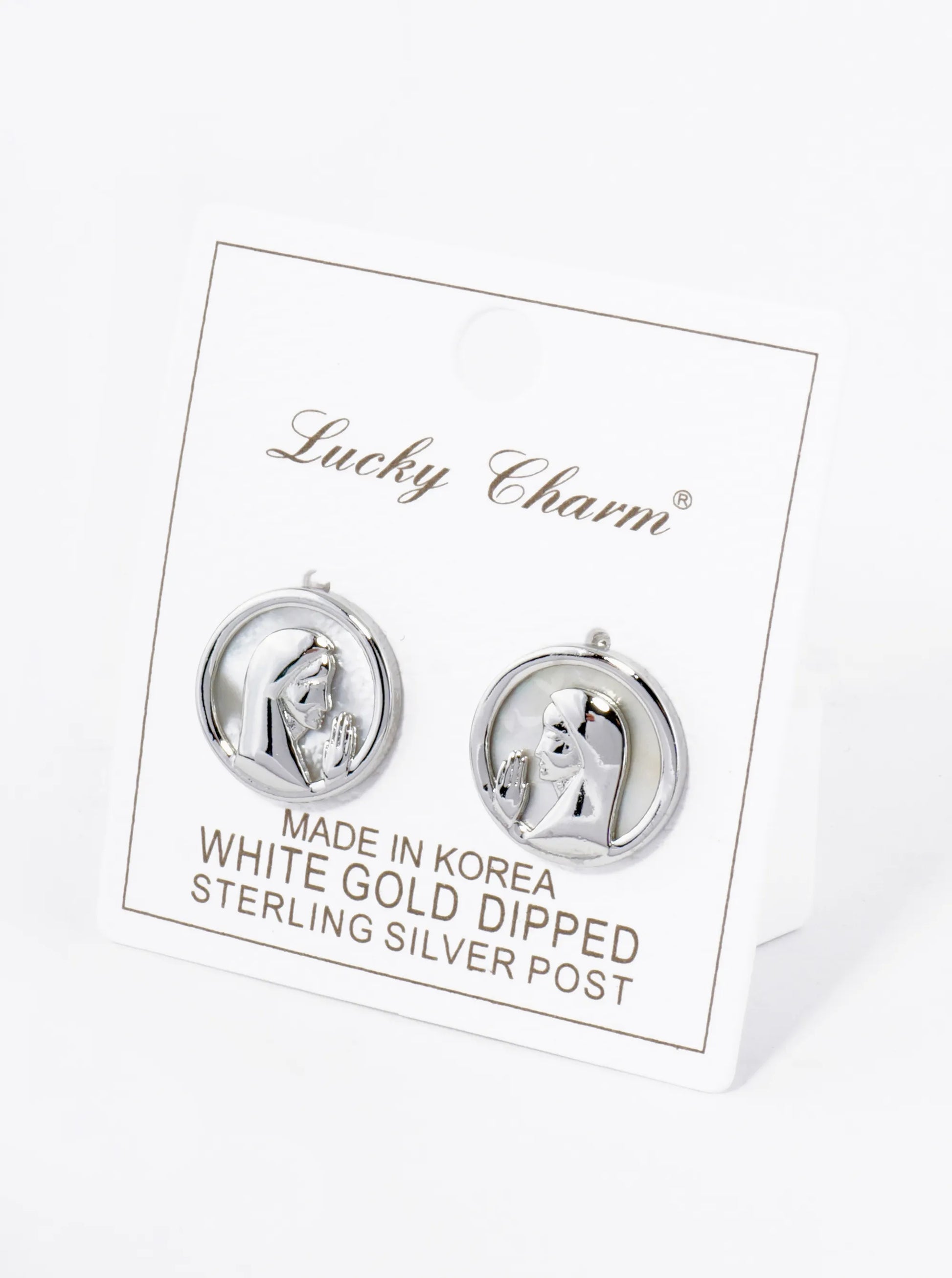 These Stud Earrings Feature Round Or Oval-shaped Settings Adorned With Mother Of Pearl. The Mother Of Pearl Is Carefully Selected For Its Iridescent Sheen And Natural Beauty. Carved Onto The Mother Of Pearl Is An Intricately Detailed Religious Prayer Or Scripture, Adding Depth And Significance To The Design. The Combination Of The Mother Of Pearl And The Prayer Inscription Creates A Harmonious And Elegant Aesthetic That Is Both Symbolic And Timeless.