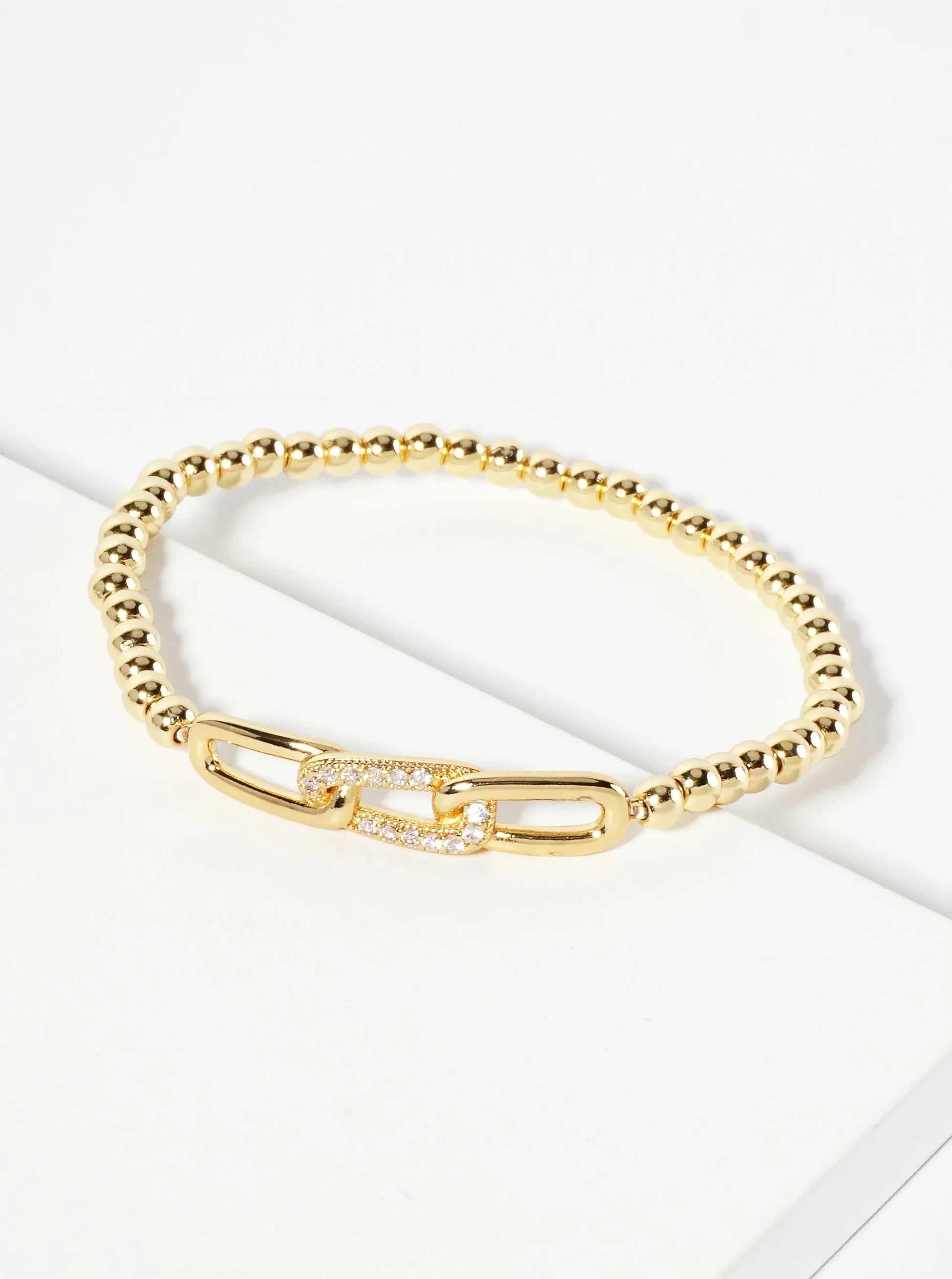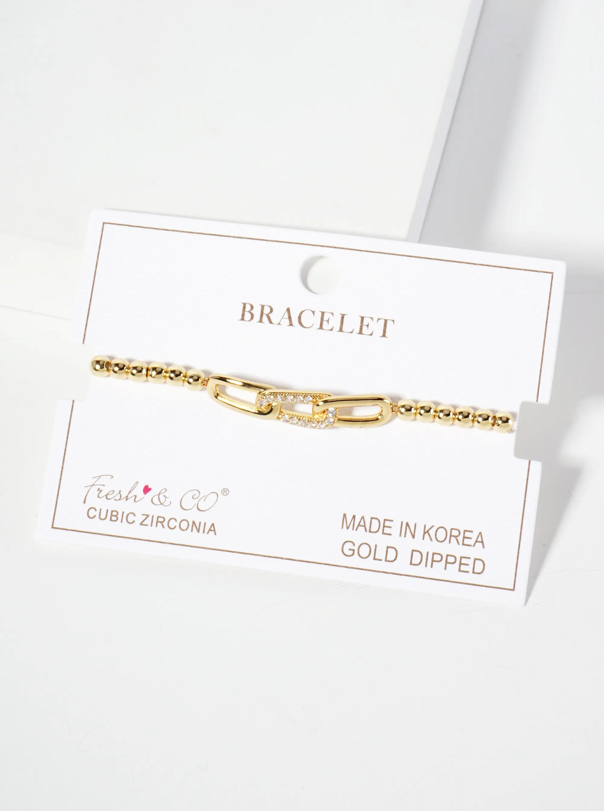The Standout Feature Of This Bracelet Is The Pave-set Cubic Zirconia Chain Accent, Which Is Seamlessly Integrated Into The Design. The Chain Is Delicately Adorned With Sparkling Cubic Zirconia Stones, Adding A Brilliant Shimmer That Contrasts Beautifully Against The Smooth Gold-dipped Beads. This Creates A Refined And Sophisticated Look, Perfect For Both Casual And Formal Occasions.