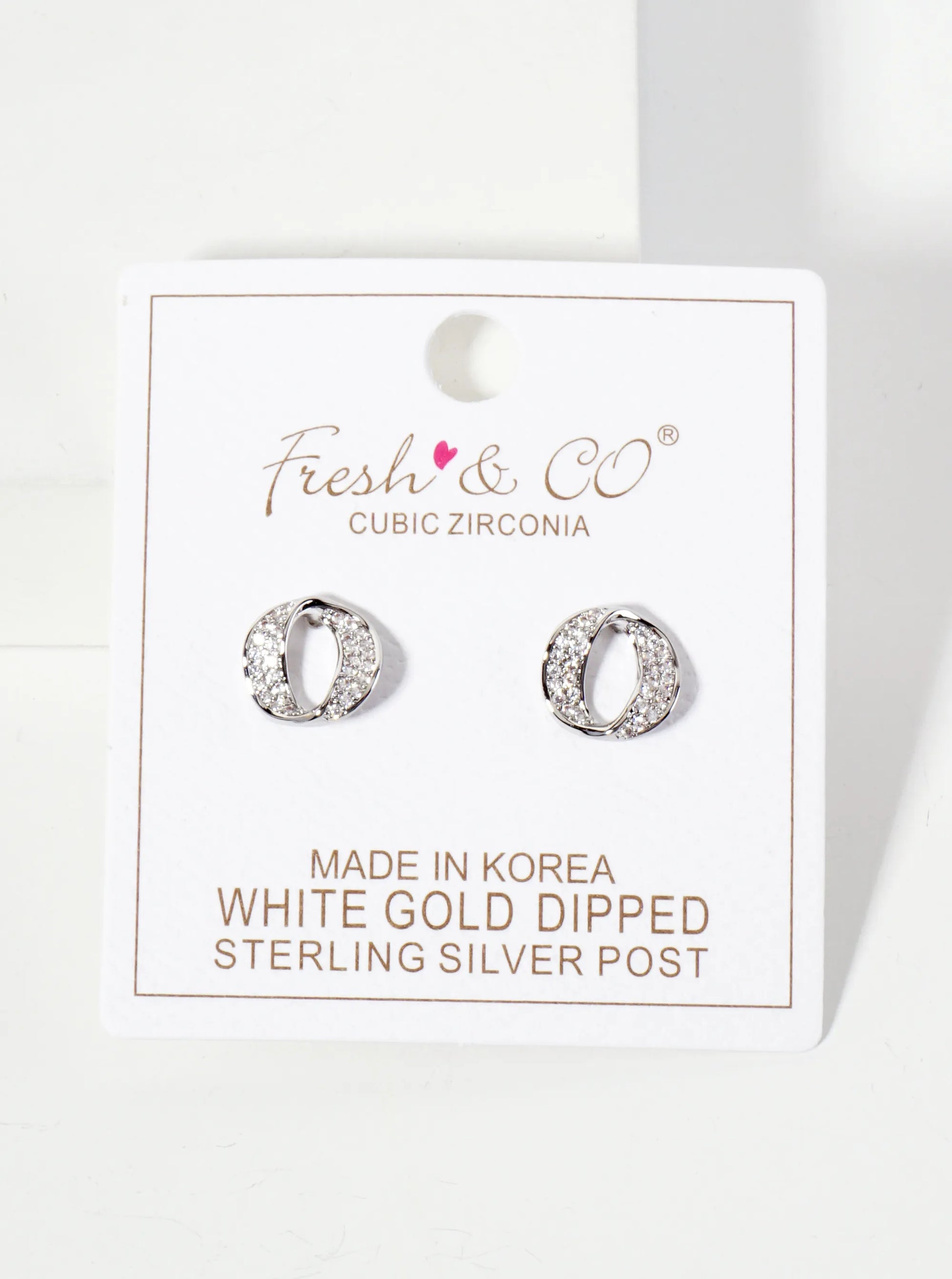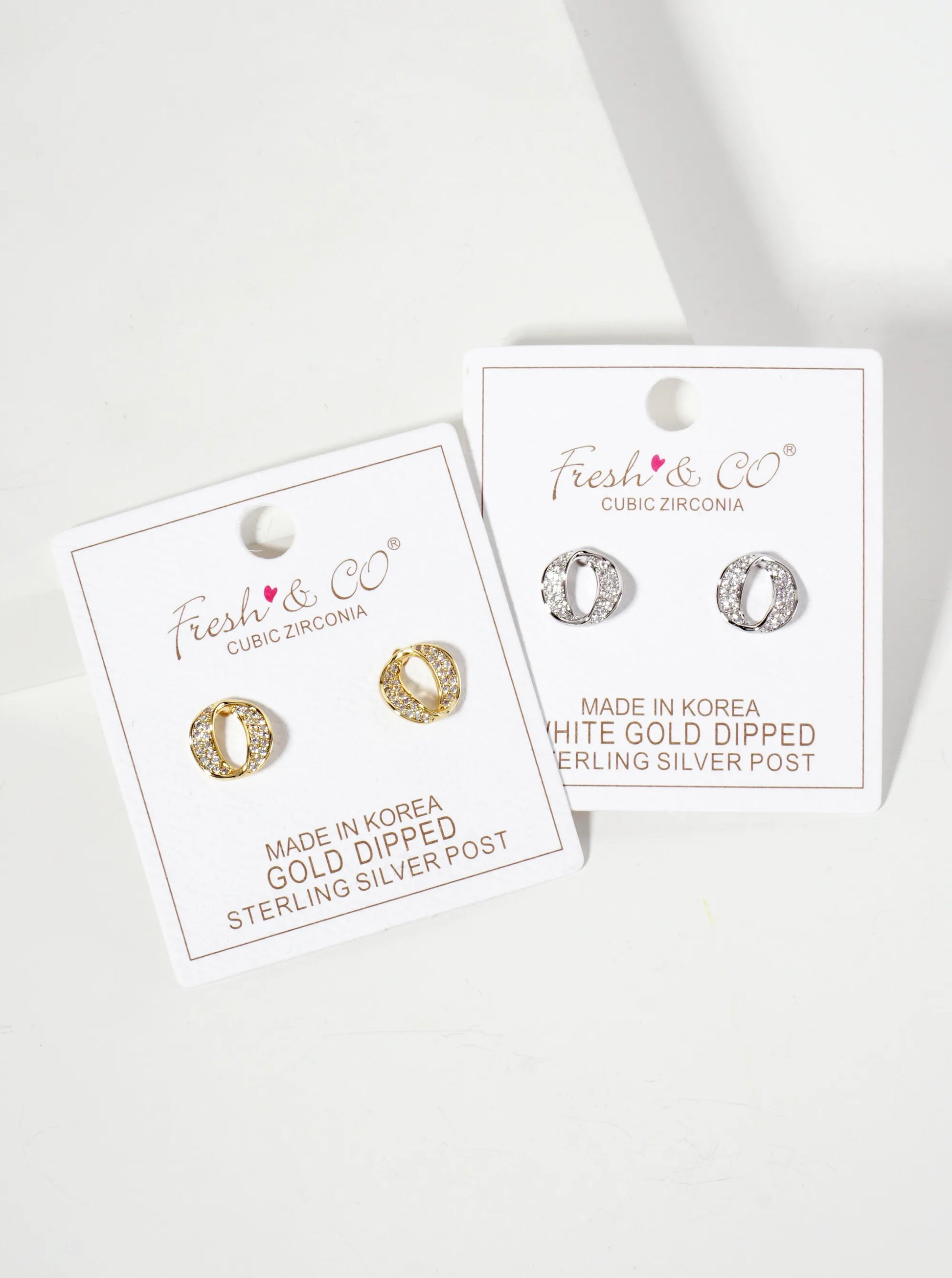18K-Gold-Dipped Pave-Set CZ 11mm Infinity Circle Minimalist Stud Earrings