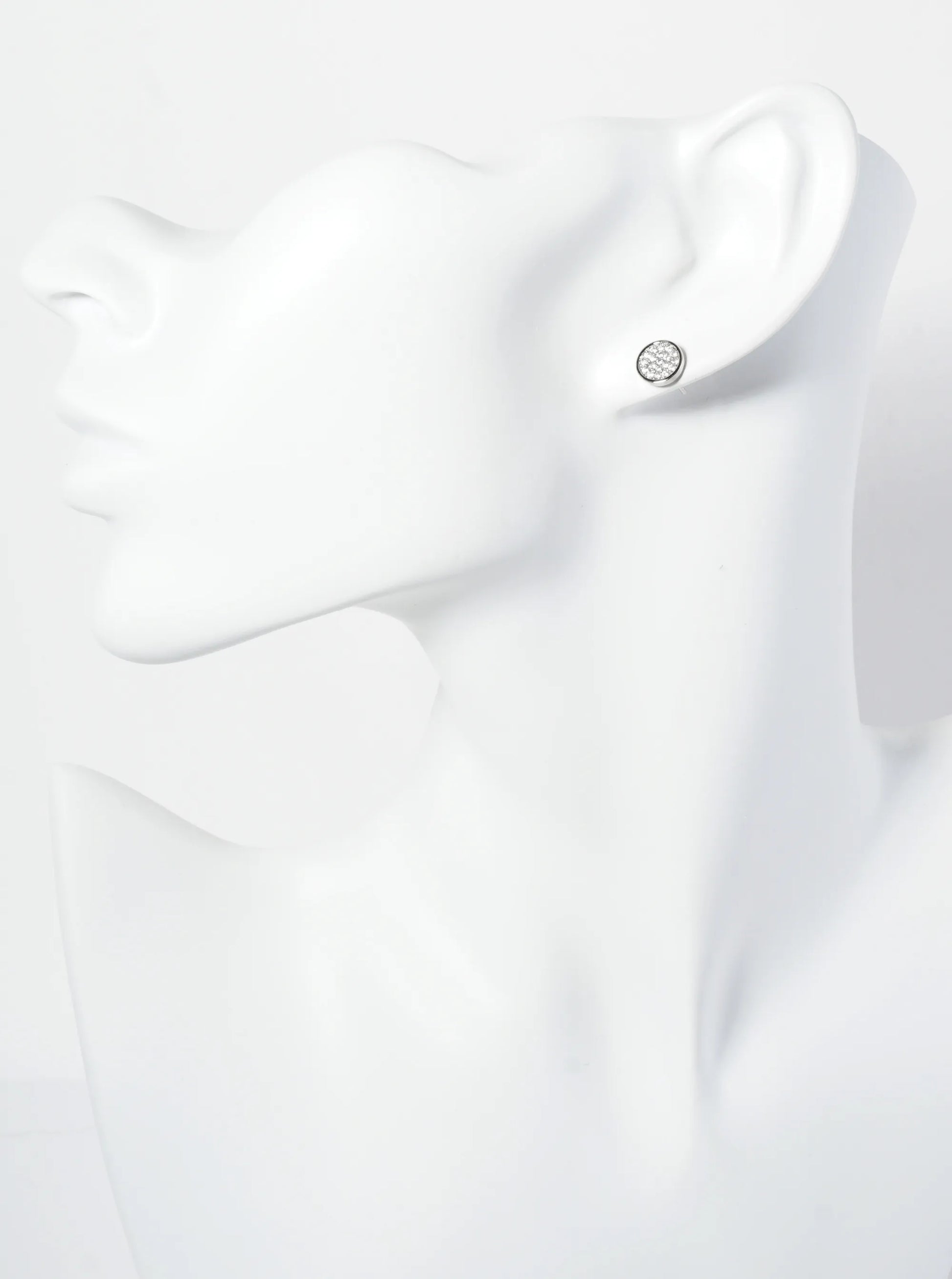 These Earrings Feature A Classic Round Shape, Measuring 7mm In Diameter. The Centerpiece Is Adorned With Pave-set Cubic Zirconia (CZ) Stones, Which Are Small, Closely Set Crystals That Create A Continuous Surface Of Sparkle. The Pave Setting Maximizes The Brilliance Of The Stones, Giving The Earrings A Dazzling, Textured Look.