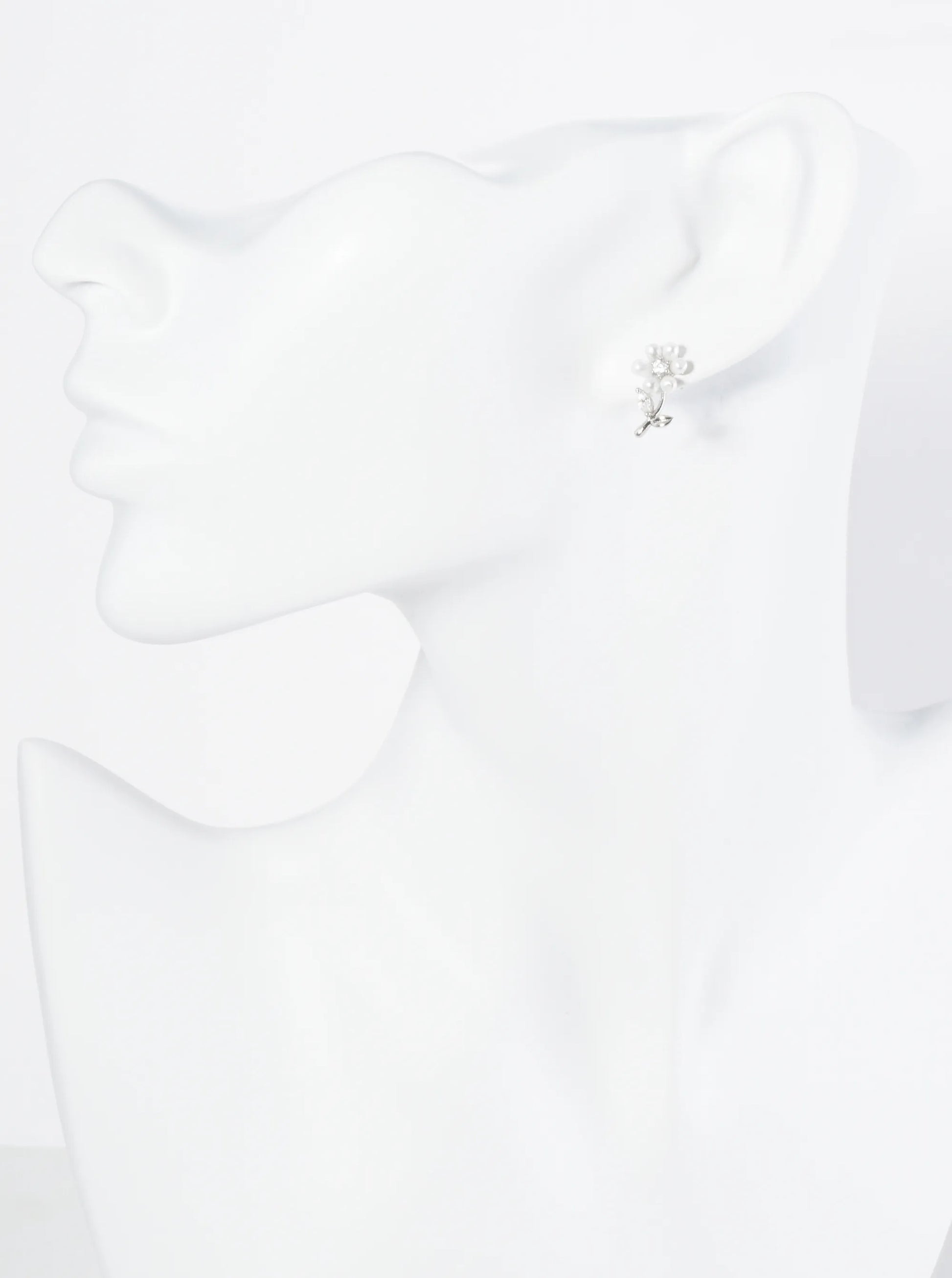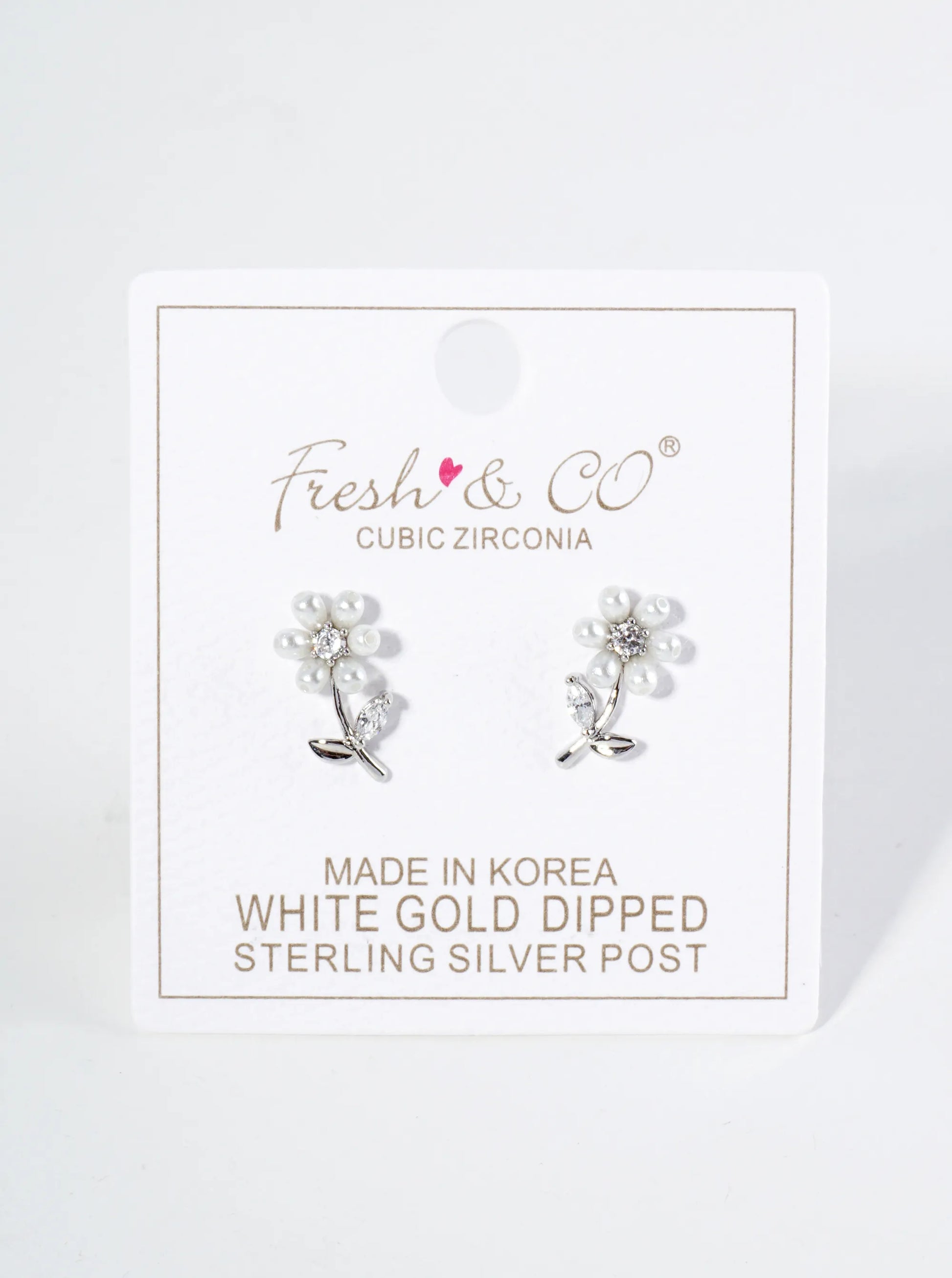 18K Gold Dipped Pearl Cubic Zirconia Flower Stud Earrings